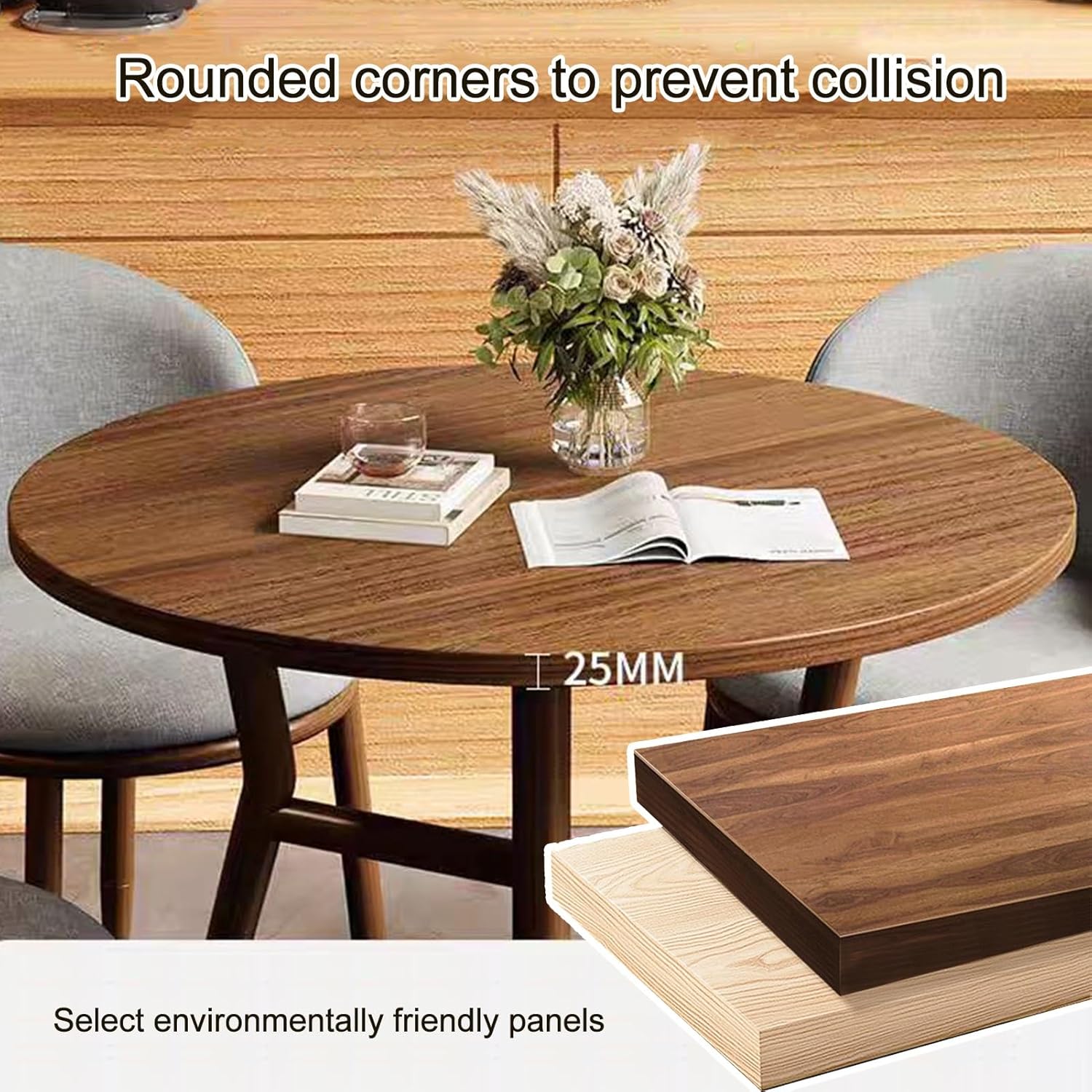 - Product Name: Table and chair combination- Color Options: Green, Blue, Light Gray, Gray- Features: Simple, generous, space-saving- Style: Simple and modern- Bracket Structure Material: Carbon steel- Table Shape: Round- Desk Top Material: Density board- Table Top Diameter: 80 cm/31.4 inches- Chairs Material: Velvet- Total Chair Height: 73cm/29in- Applicable Scenes: Office, coffee shop, tea shop, reception, restaurant, library, cinema, clothing store, maternal and child shop, living room, etc.- Applicable Number: Suitable for 4 people- Packing Method: Assembly required- Packing List: 1 table, 4 chairs (other items shown in pictures are decorations and not included)Warm Tips:1. Size Description: Product measurements are hand-measured and may have an error of 1-3 cm. Please refer to actual items received for accurate sizing.2. Picture Description: Product images are genuine. There may be slight chromatic aberration due to lighting, angle, display, etc. Please understand.