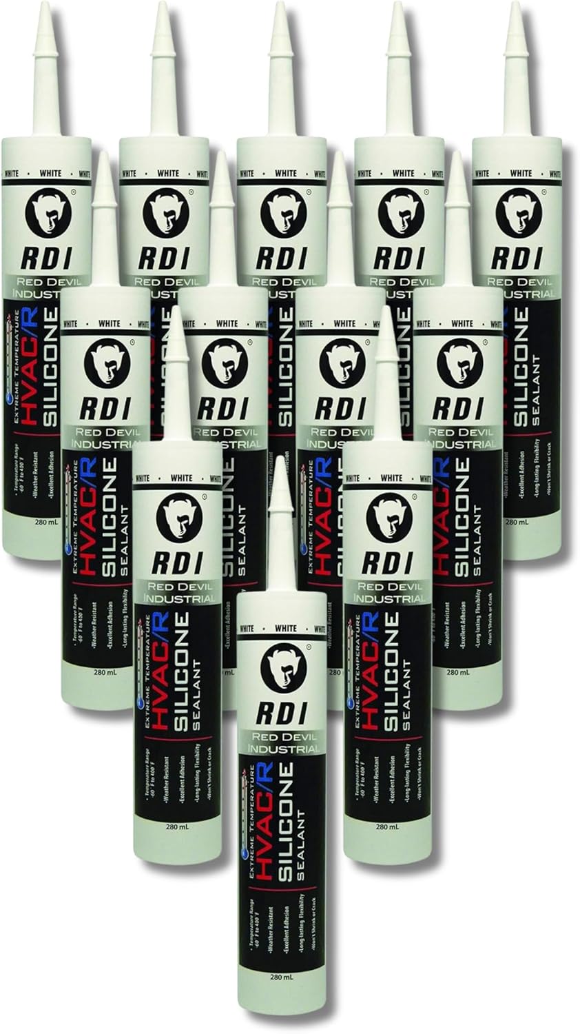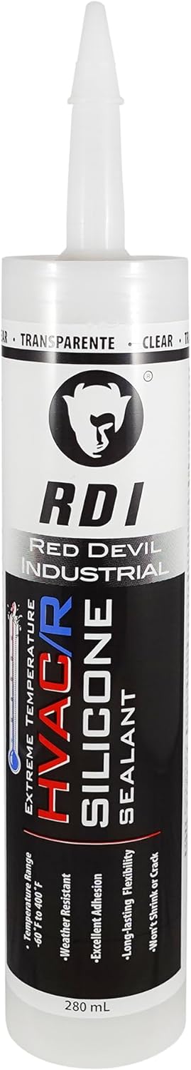 Red Devil Extreme Temperature HVAC/R Silicone Sealant is a superior quality sealant made especially for HVAC/R applications. It provides long-lasting weather-resistant seals and offers excellent adhesion, flexibility and durability. It adheres to metal and other building materials and remains flexible from -60°F to 400°F. Use on Air Conditioners, Ducts, Furnaces, Refrigerators, Vents, Pipes, Window and Door Frames, Skylights, Gutters, Aluminum Siding, Trim & Gutters.