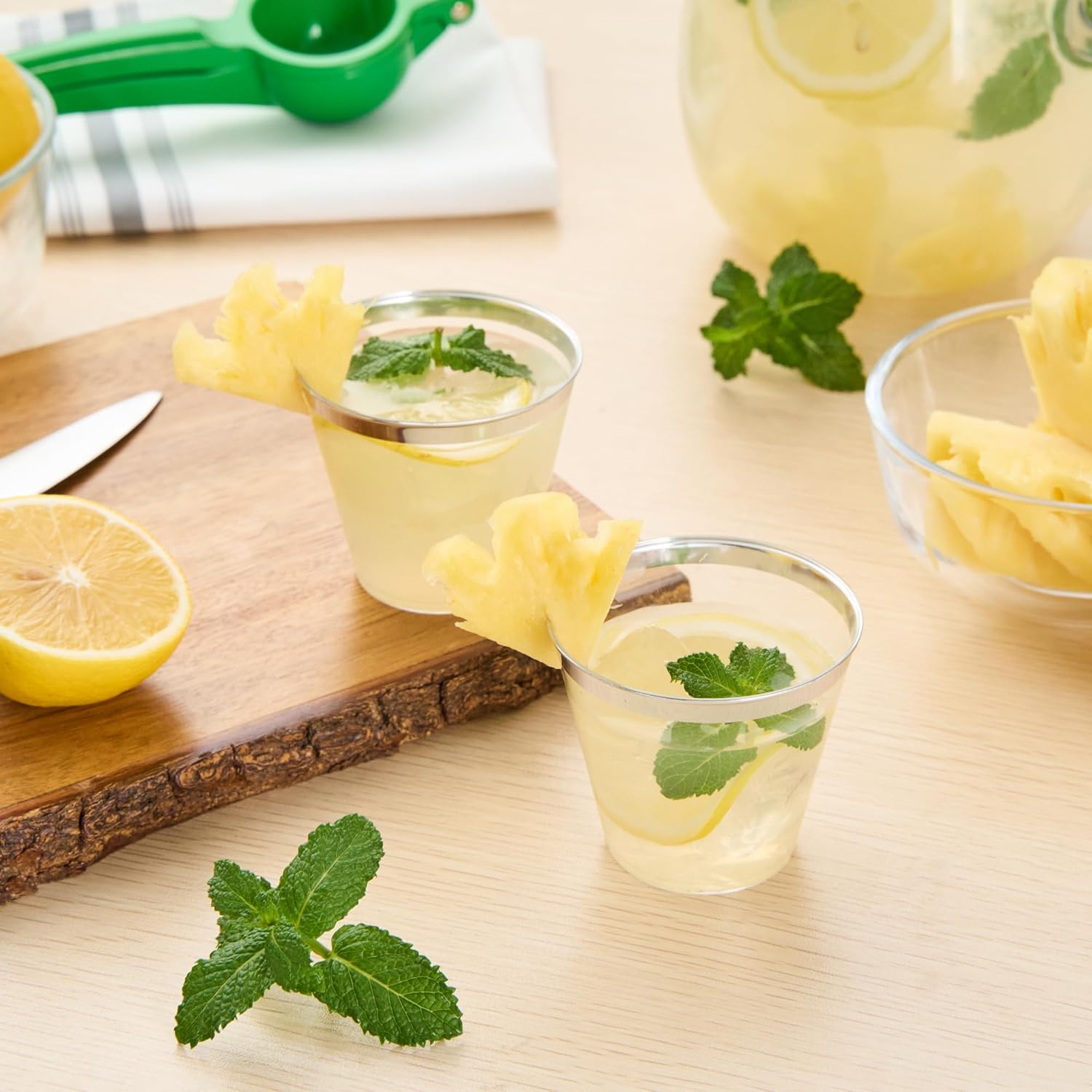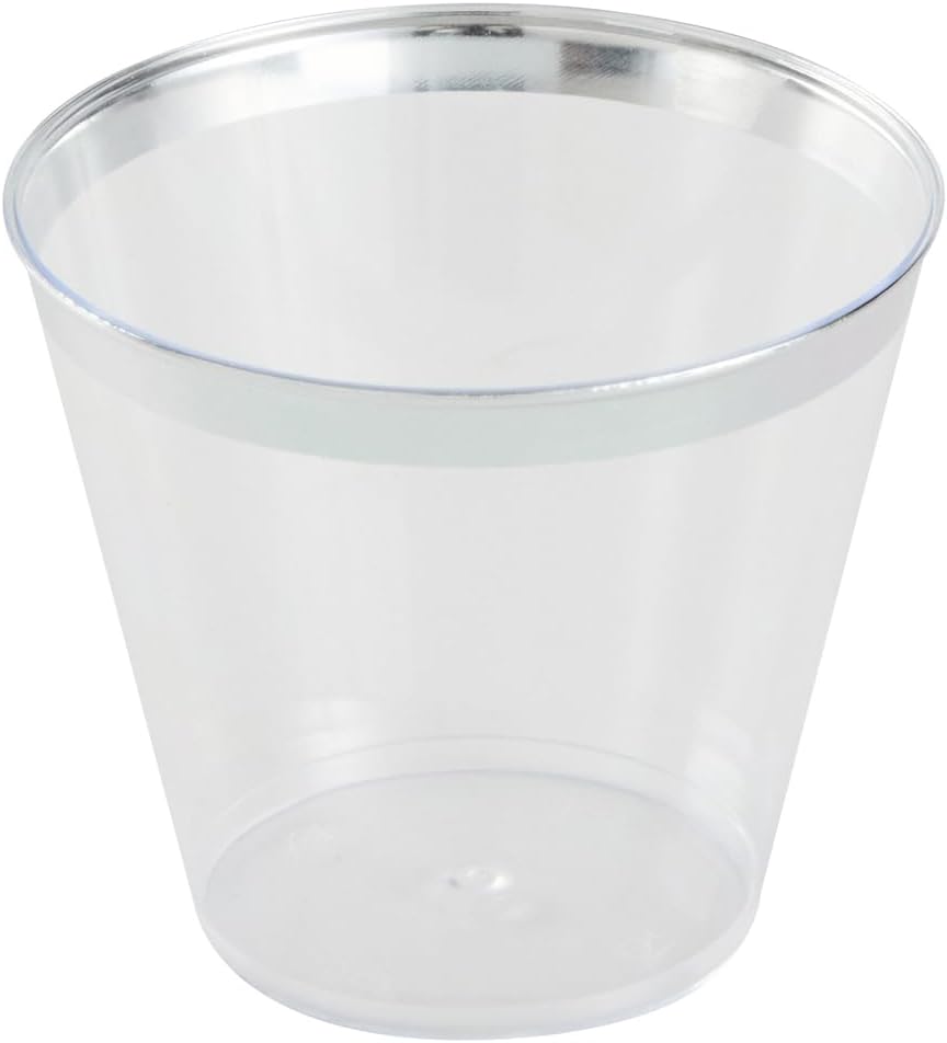 Present your drinks in style with our Chef 101 5-ounce Clear Plastic Tumblers. These versatile PS plastic glasses are designed with a silver rim that complements any party theme, from elegant to casual. With their cold food-friendly design, these elegant party cups enhance event presentations while maintaining durability and class. Additionally, the disposable feature of these clear glasses supports sustainable practices, aligning with eco-conscious initiatives. Suitable for weddings, birthdays, parties, and more, these disposable glasses will elevate your service and presentation. Measuring 2.8 inches in diameter and 2.3 inches in height, these 5-ounce cocktail glasses are crafted from high-quality plastic, ensuring ease of handling. Sold in a 500 count box.