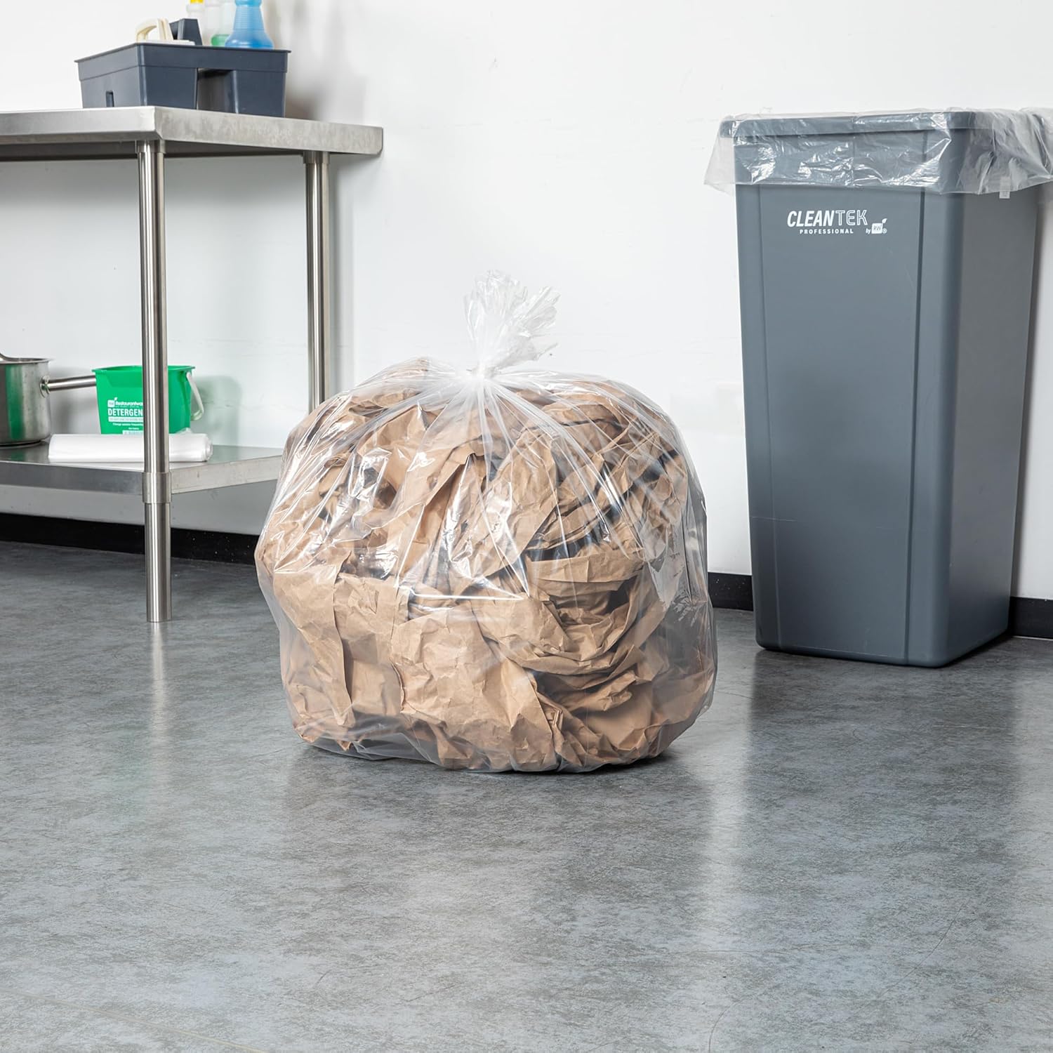 Elevate your kitchen cleanup routine with our RW Clean 20-gallon Clear Plastic Trash Can Liners. Crafted from LDPE plastic, and having a thickness of 0.7 mils, these trash bags are durable enough to hold large amounts of trash with ease. These standard-duty trash bags are stretchable to avoid puncturing or tearing while collecting sharp or irregular objects. Designed with a reinforced star seal bottom, these bin bags won't leak wet trash into the bins and enable easy removal. The clear design of these garbage bags allows visibility of contents, enabling quick identification and sorting. With a capacity of 20 gallons, these kitchen trash bags fit 20 to 30-gallon trash cans. These refuse sacks measure 30 inches in length by 36 inches in width. Shipped as coreless rolls in a 200 count box.