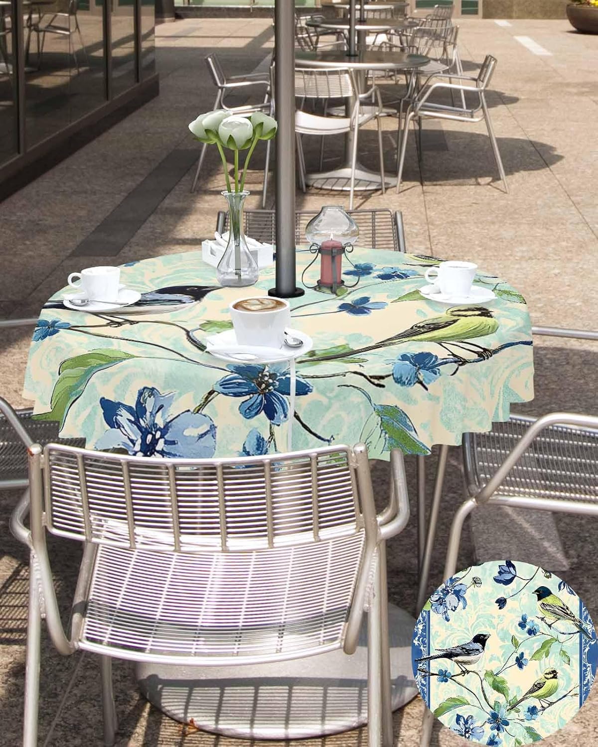 Product Features: This outdoor tablecloth features an umbrella hole with a zipper closure, which can be easily opened and closed around the courtyard table umbrella without the need to remove the terrace umbrella. This product is made of waterproof polyester pongee, which has good wear resistance and waterproof properties, is easy to maintain in daily life, and is suitable for indoor or outdoor use. Applicable Scenarios: This outdoor tablecloth has beautiful prints that can create the perfect atmosphere you need. It is perfect for summer gatherings, parties, picnics, holidays, special occasions, and daily use, creating a perfect dining table shape for your dining occasion. Leave a deep impression on your guests and bring you a good mood. Product Size: 54"R in(137cm) 60"R in(153cm) 54"x54" in(137x137cm) 60"x60" in(153x153cm) 52"x70" in(132x178cm) 54"x80" in(137x203cm) 60"x84" in(152x213cm) 60"x102" in(152x259cm) 60"x120" in(152x305cm) Washing Instructions: This product can be machine washed or hand washed. Do not use bleach during cleaning to avoid damaging the surface of the product. Please use a low-temperature iron for ironing, as excessively high temperatures can cause damage to the product.