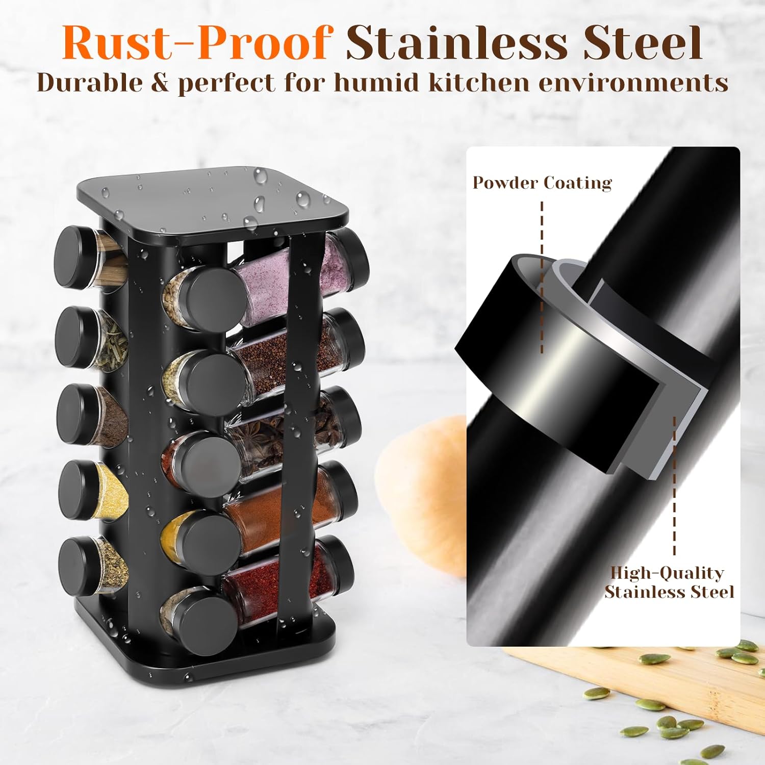 Discover the ultimate space-saving solution with our rotatable spice rack, designed to keep your kitchen organized and stylish. Crafted from durable stainless steel, this compact rotating spice rack offers easy access to all your spices with a simple turn. Its innovative design allows for efficient use of cabinet or counter space, making it the perfect organizer for any kitchen. Whether you're looking for a rotating spice rack with jars included or a rotating spice rack wood model, our product combines functionality with elegance. Store up to 20 spice jars, ensuring your spices are always within reach. The rotatable feature enhances visibility and accessibility, making cooking and meal prep a breeze. Ideal for those who love to cook, this rotating spice rack with spices included is a must-have for any culinary enthusiast. Transform your kitchen today with our rotating spice rack and enjoy the perfect blend of convenience and style.