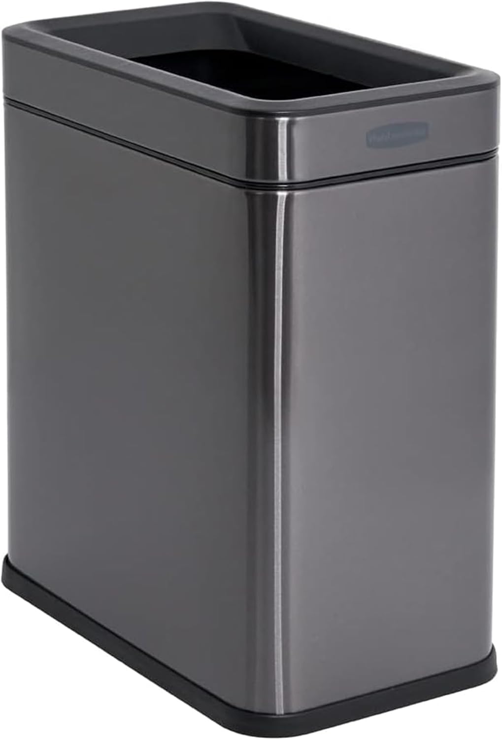 The Rubbermaid 2.6- Gallon Charcoal Stainless Steel Slim Step-On is the perfect size for bathroom or home waste. The lid keeps trash out of sight and closes slowly to reduce unwanted noise while the pedal keeps your hands clean. The dark charcoal finish complements home finishes, hides fingerprints, smudges and dirt to keep your container looking clean. The slim design allows the container to fit comfortably in tight spaces, while still holding bathroom/home waste. There is a removeable liner which allows for easy disposal and cleanability and a bag cinch that secures standard liner bags at the top of the liner to prevent the bag from slipping.