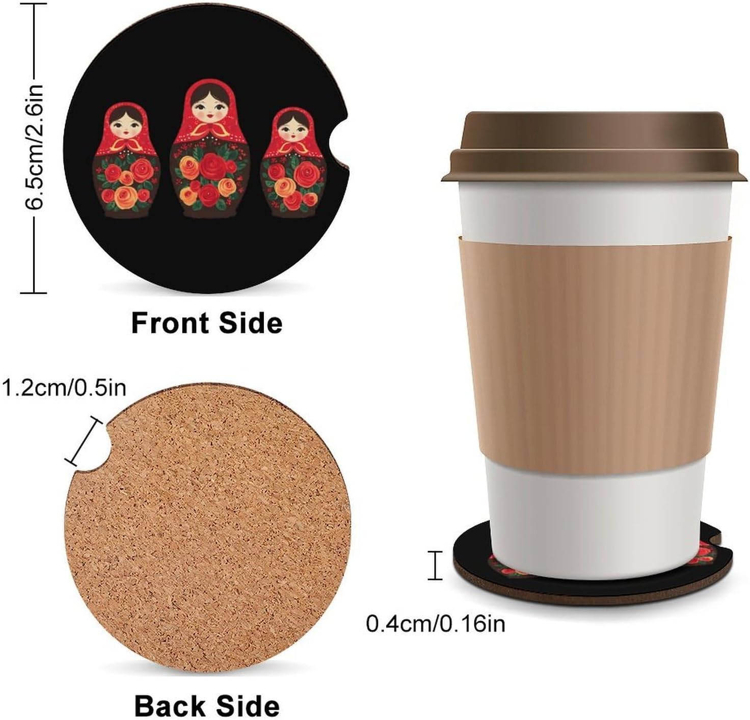 car coasters,coasters set of 6,coasters set of 4,car cup coasters,cup holder coasters for car Round Wood Car Cup Holder Coaster 2.56 Inches Cute Absorbent for Drinks Coaster Auto Interior Decorative Accessories with Funny Pattern Design