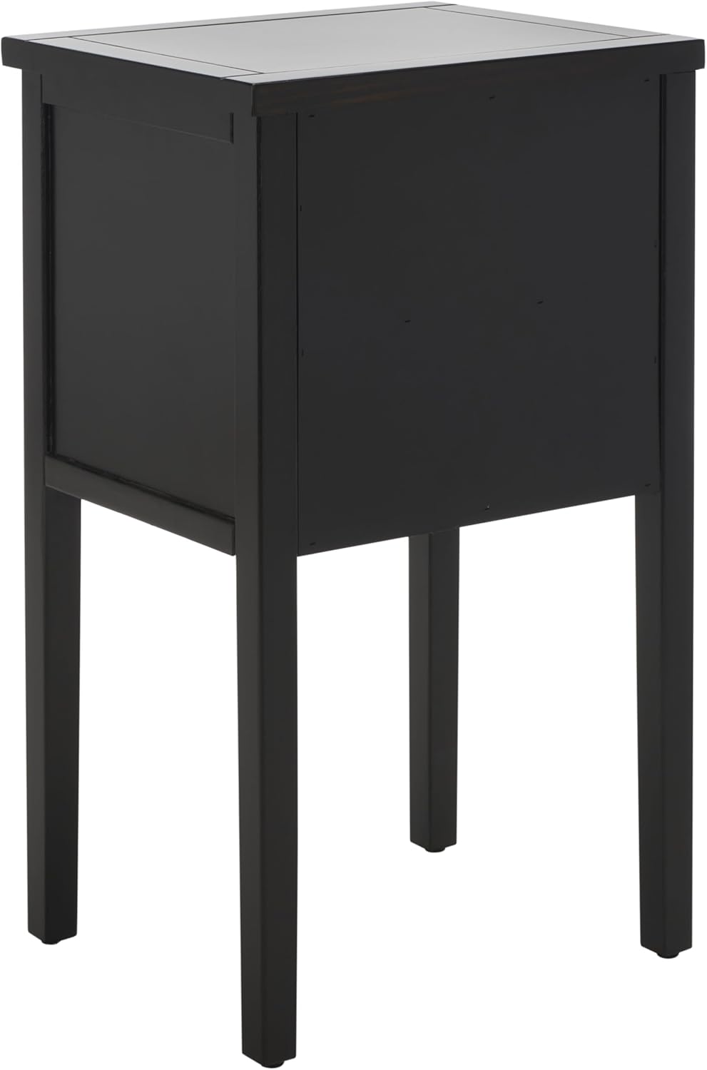 A French farmhouse take on the traditional Shaker end table, this Toby Table is the designer smart addition to any interior. Toby is charming and rustic chic in black wood, with silver pulls on its two drawers completing the look.