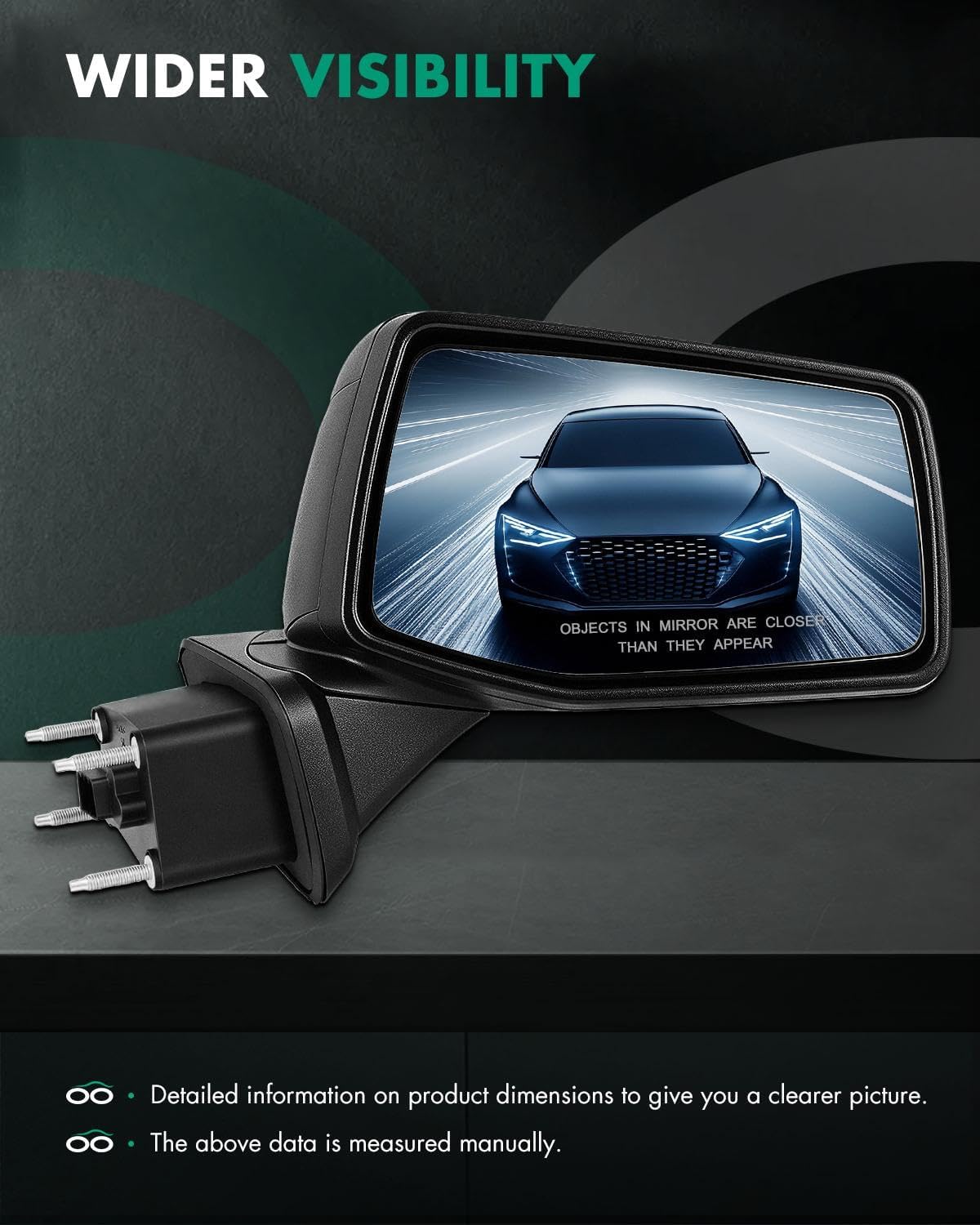 FIT FOR: 2019 For Chevy For SILVERADO 1500 2020 For Chevy For SILVERADO 1500 2021 For Chevy For SILVERADO 1500 2022 For Chevy For SILVERADO 1500 2023 For Chevy For SILVERADO 1500 2024 For Chevy For SILVERADO 1500 WHEN YOUR SIDE VIEW MIRRORS NEED TO BE REPLACEDDo you notice something missing from the side of your car every time you signal to change lanes; Were you backing up into or out of a parking space without looking at both sides of your vehicle? If so, then it's likely you've damaged your door mirror glass or completely busted the whole door mirror. This is quite a common occurrence, and almost everybody at one point or another has suffered the trauma of breaking one (or both) of their side door mirrors. Either way, driving without a side mirror is dangerous and leaves open the possibility you wouldn't see a car next to you if you want to change lanes. That means that you need to get a new door mirror on your car. Make Sure It Fits -- Make sure the part fits your vehicle, enter your make, model and trim level into the garage tool.