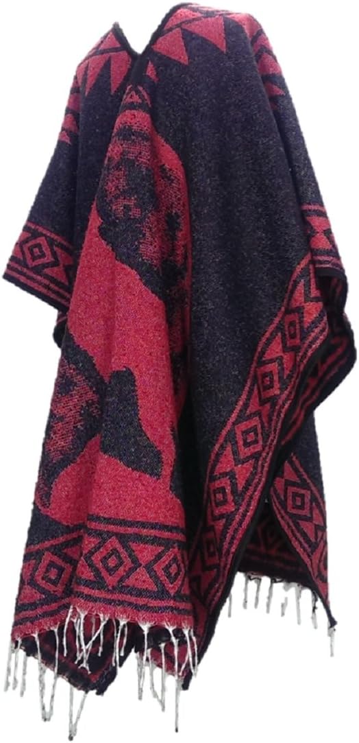 THE SHARPSHOOTER BRAND HOWLING WOLF FULL MOON PONCHO IS JUST RIGHT FOR ALL OCCASIONS YEAR ROUND LIKE HORSEBACK RIDING, HIKING, FISHING, HUNTING, SPRING RENDEZVOUS/BREAK, SUMMER CAMP, FALL, AND WINTER HOLIDAY PARTIES. EACH SHARPSHOOTER BRAND HOWLING WOLF FULL MOON HAND WOVEN PONCHO IS JUST RIGHT FOR KEEPING OFF THE CHILL INDOORS OR OUTDOORS YEAR ROUND. THE NEW SHARPSHOOTER BRAND HOWLING WOLF FULL MOON STYLE HAND WOVEN PONCHO IS JUST RIGHT FOR COOL DAYS AND COLDER NIGHTS. THE UNIQUE HAND WOVEN PATTERN AND STYLE OF THE SHARPSHOOTER HOWLING WOLF FULL MOON PONCHO REPRESENTS THE WEAVING TECHNIQUE OF OLD SOUTHWEST ARTISANS. YOU CAN HAVE SOUTHWEST STYLE WHILE KEEPING OFF THE CHILL. USE SHARPSHOOTER STYLE PONCHOS AND HATS FOR: OUTDOOR SPORTING EVENTS LIKE FOOTBALL GAMES, PICNICS, BEACH TRIPS, HORSEBACK RIDING, DRIVE-IN MOVIE VIEWING, COWBOY ACTION SHOOTING, CAMPING, HUNTING, AND HIKING. INTERIOR DECORATING. COVERING UP OUT OF THE SHOWER. WATCHING YOUR FAVORITE CLINT EASTWOOD MOVIES IN YOUR FAVORITE EASY CHAIR WITH YOUR FRIENDS. ATTENDING MASQUERADE PARTIES, ROUNDEZVOUS EVENTS, HARVEST FESTIVALS, HALLOWEEN PARTIES, CHRISTMAS, AND NEW YEARS CELEBRATIONS. AVOIDING SICKNESS BY STAYING WARM. WEARING AROUND THE HOUSE TO SAVE ON ENERGY BILLS. WARM 50% ACRYLIC 40% POLYESTER 10% COTTON PONCHO MATERIAL IS MACHINE WASHABLE, MEASURES 78” X 48” UNFOLDED. YOU SELECT THE HAT SIZE. NOTICE: PICTURES AND DESCRIPTION COPYRIGHT PROTECTED.