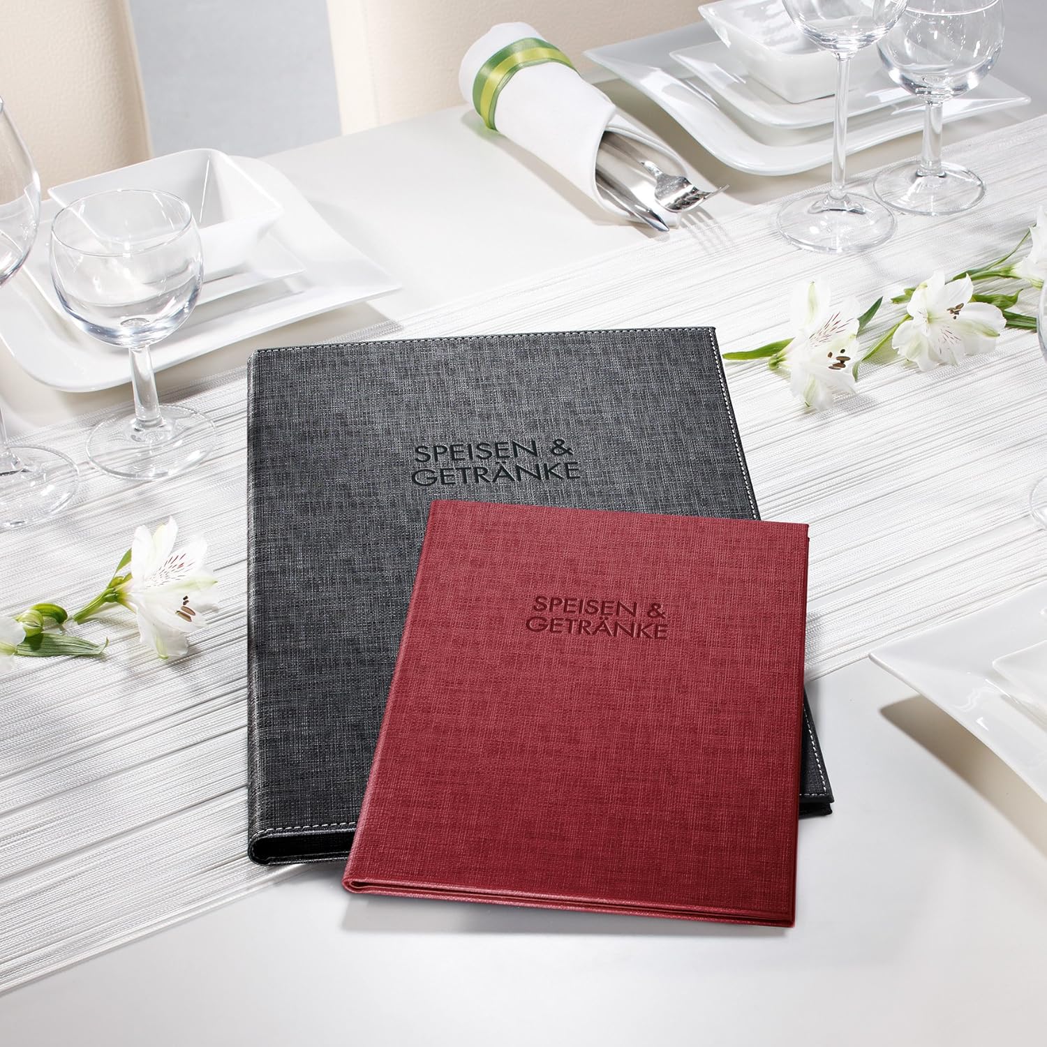 Sigel Menu Folder with elastic binding SM110 The main features at a glance:Menu Folder with elastic binding, black, with 2 double transparent pockets for 8 pages, for A4 // Product Dimensions: 9.45 x 13.39 x 0.47 inch // Material: plasticDesign: black // Model: with 2 double transparent pockets for 8 pagesincl. 2 exchangeable double transparent pockets for 8 pages A4 // durable, easy-care hardcover // classy imitation leather cover with linen structureexchange or add more pages in a matter of seconds // Additional double transparent pockets are available from the Sigel range (prod. codes SM180)Sigel Workflow: modern efficiencySigel Workflow includes a versatile product range, which offers a functional added value and is oriented towards efficient work. Our professional products make it possible for perfect operational sequences in office, at events or personal. Thus communication, organization and identification will become easier and more efficient. The green Sigel-logo stands for top manufacturing quality, first-class functionality and the quest for innovation. We are always on the lookout for new organisational solutions for our customers so that all workflows can be arranged in a structured manner.SigelFor many years now consumers have confidence in Sigel's trademark. It stands for everything that makes Sigel special: innovation, style and high-quality products, which are manufactured with great imagination and a distinct purpose for the different needs of the users.