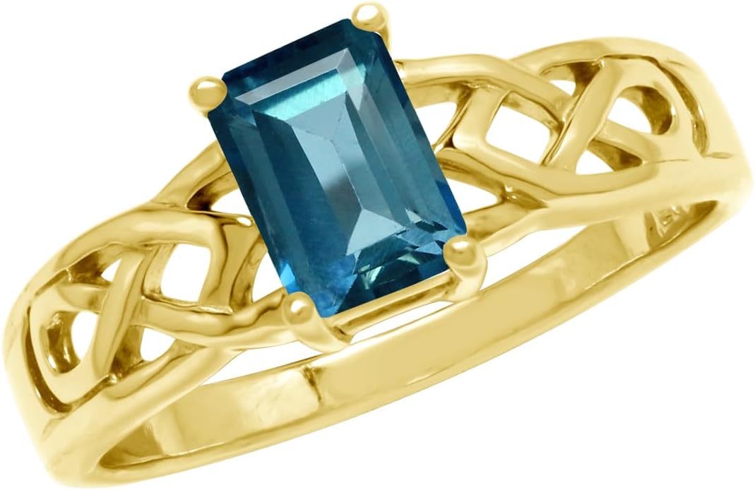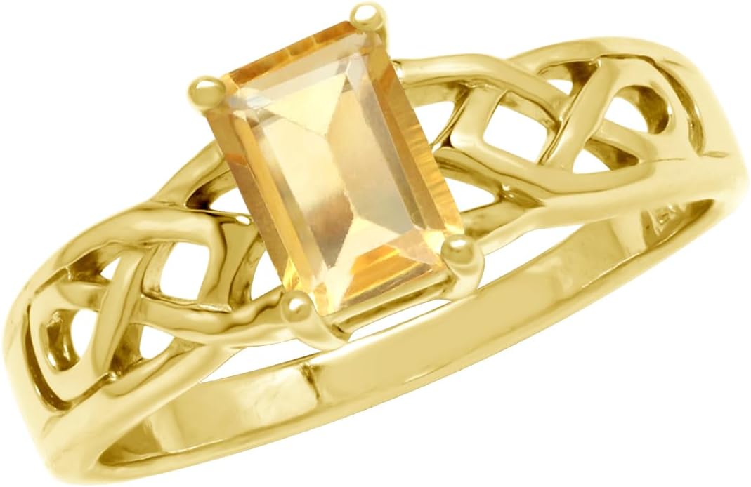 Silvershake 7X5mm Octagon Shape Birthstone Gemstone White Gold Plated or Yellow Gold Plated 925 Sterling Silver Scroll / Filigree Celtic Knot Solitaire Ring Jewelry for Women