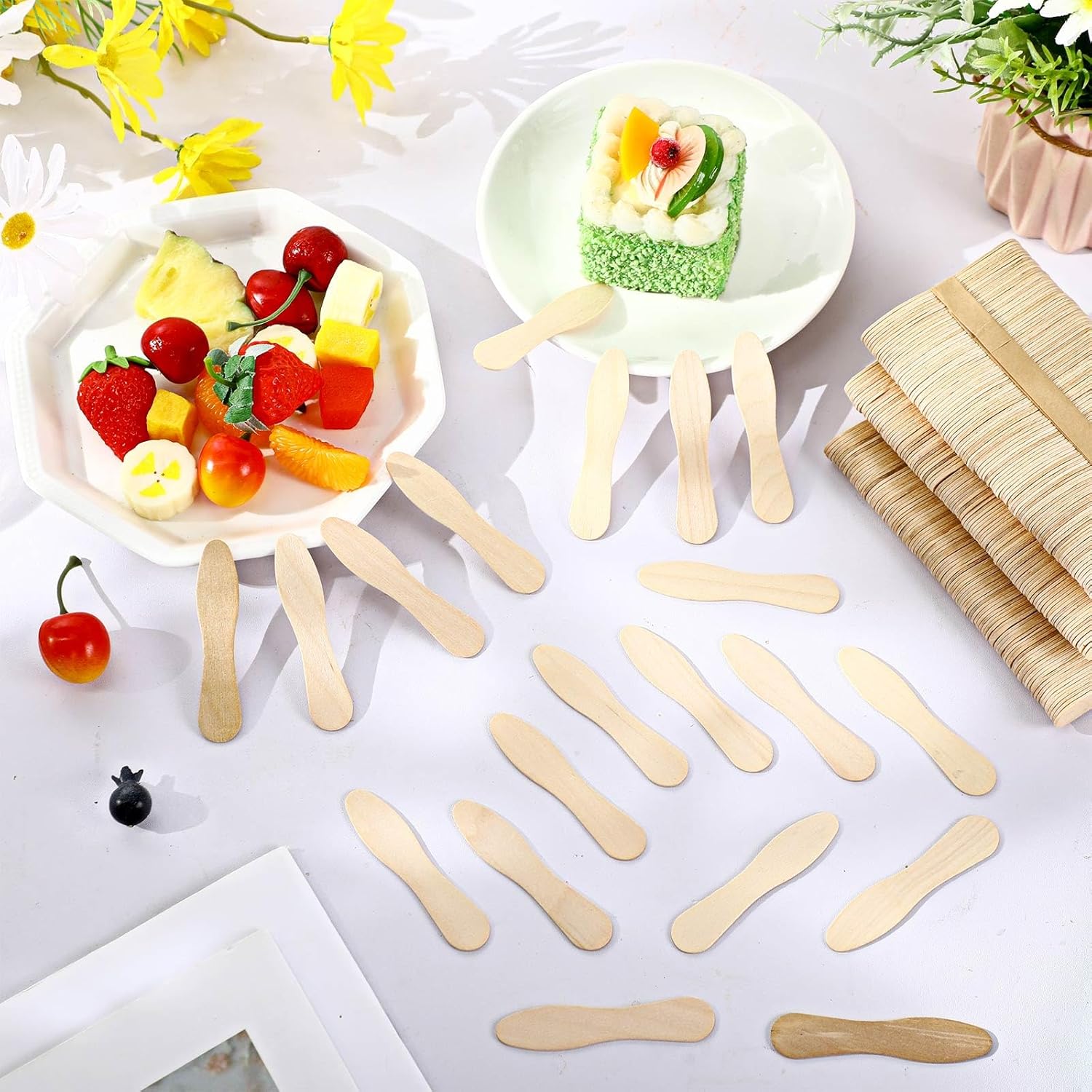Features: The tasting spoons disposable mini can also be applied for DIY supplies, and you can draw some patterns or write some words on them to make them personalized. The sample spoons for tasting are classic in design and meet the aesthetic standards of most people. Specifications: Material: quality birch wood Color: as shown in the picture Size: approx. 3 x 0.6 x 0.06 inches/ 75 x 15 x 1.5 mm Package includes: 8000 x Mini sample spoons Notes: Manual measurement, please allow slight errors on size. The color may exist a slight difference due to different screen displays.