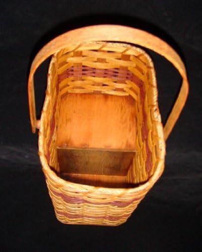 Small 7" stair step basket, beautifully rests on your stairsteps. Swivel Handle, Perfect for storing books and Magazines, handmade from all natural material by Central Ohio Amish Families, colors may vary. Top Opening is about 15" x 8" (outside) (13 3/3 x 7" wide inside). Overall Height is 14 3/4. 7" from bottom to the next step shelf.