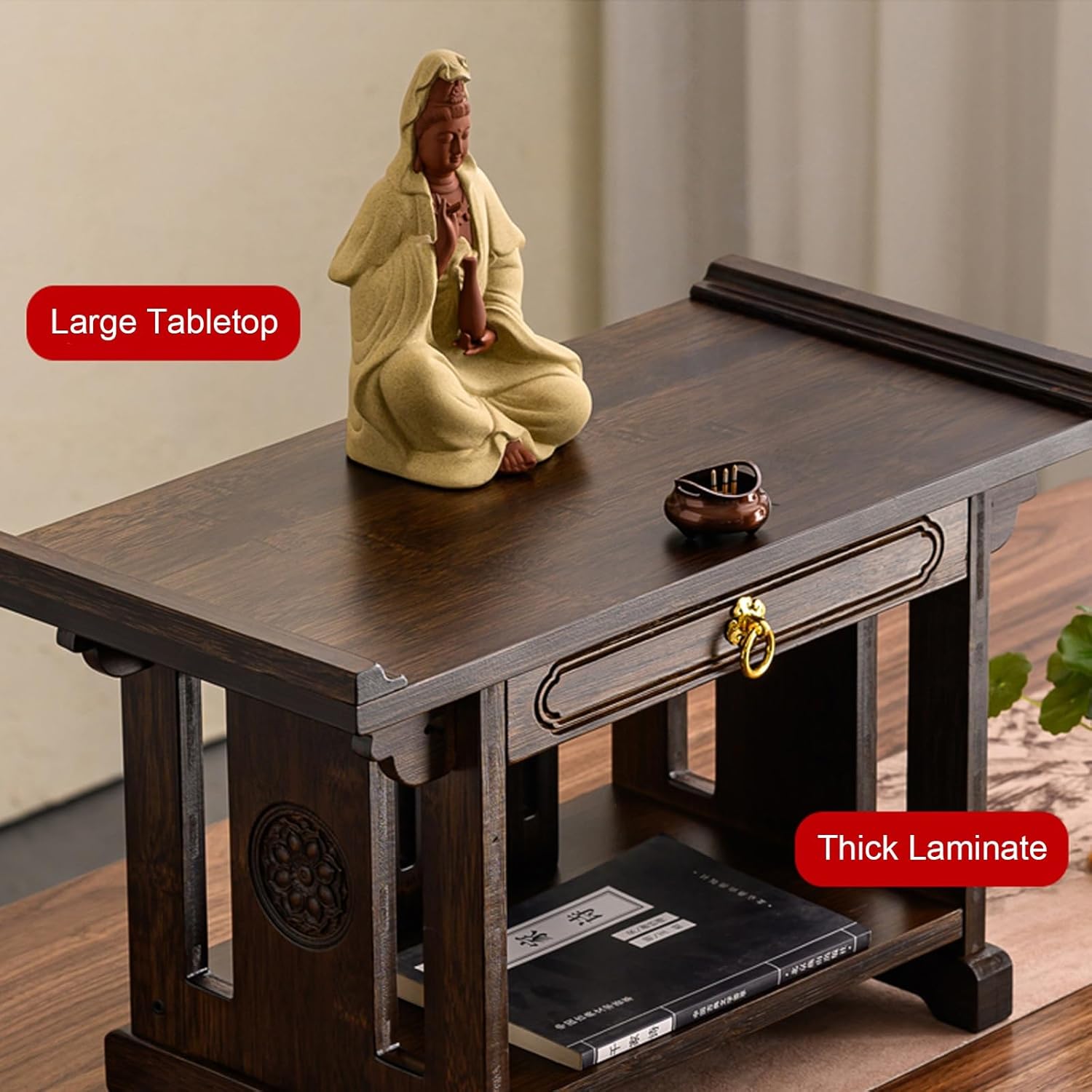 LYXWGRZD retro Chinese-style altar table combines spiritual functionality with traditional aesthetics, crafted from eco-friendly bamboo for lasting durability. The elegant upturned cornices and intricate relief patterns reflect classic oriental design, while the spacious desktop and telescopic drawer provide versatile storage for religious artifacts, incense, and daily essentials.Specification:Name: Personal Shrine Altar Table BuddhaMaterial: BambooColor: BrwonSize:40*25*28cm/16*9.8*11in50*25*28cm/19.6*9.8*11in60*25*28cm/23.6*9.8*11inPackage include:1* Altar TableNotes:1.Please check the size before buying.Due to manual measurement, an error of 0-3cm will occur.2.The product photos do not contain items other than the product.3.Please note that due to different monitors, there may be slight color difference, please understand.