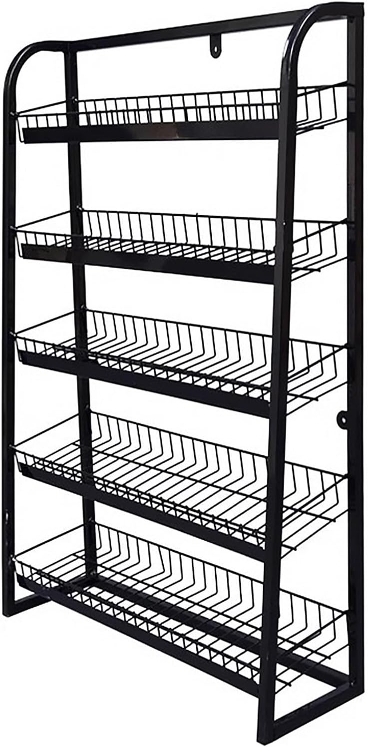 Candy Display Organizer Shelf: Description: Supermarket snacks pile up? Struggling to find snacks? Space is occupied? Don't worry! Supermarket snacks organizer is here to help you solve your troubles! Organized, space-saving, easy to access, but also to maintain the fresh taste of snacks! Feature : Beveled mouth basket design, preventing items from falling. Hollow mesh basket for ventilation. Iron frame, sturdy and durable. Rounded corners edge, smooth and no burrs, does not hurt your hands. Floor standing/wall mounted, small footprint, suitable for areas with high flow of people. Multi-layer storage, increase exposure, effective and rational use of space. Modern and minimalist, easy to match with different styles of rooms. Suitable for kitchen, bathroom, laundry room, balcony, study room or anywhere you need to store and organize. Easy to clean : Wipe with wet cloth to remove dirt. Specifications: Material : Metal Iron Color : Black , White , Grey Width: 15cm/5.9in Total Height: 67cm/26.4in Length: 45cm/17.7in, 50cm/19.7in, 60cm/23.6in Single Layer Load: 20KG/44LBS Yes/No Assembly is Required:No Package Include : 1 x Supermarket Shelf (Not include decorative items.) Notice : The product size is purely manual measurement and there is an error of 1-3cm. It is a normal phenomenon. Please be reminded that due to the light and screen difference, the item's color may be slightly different from the pictures.