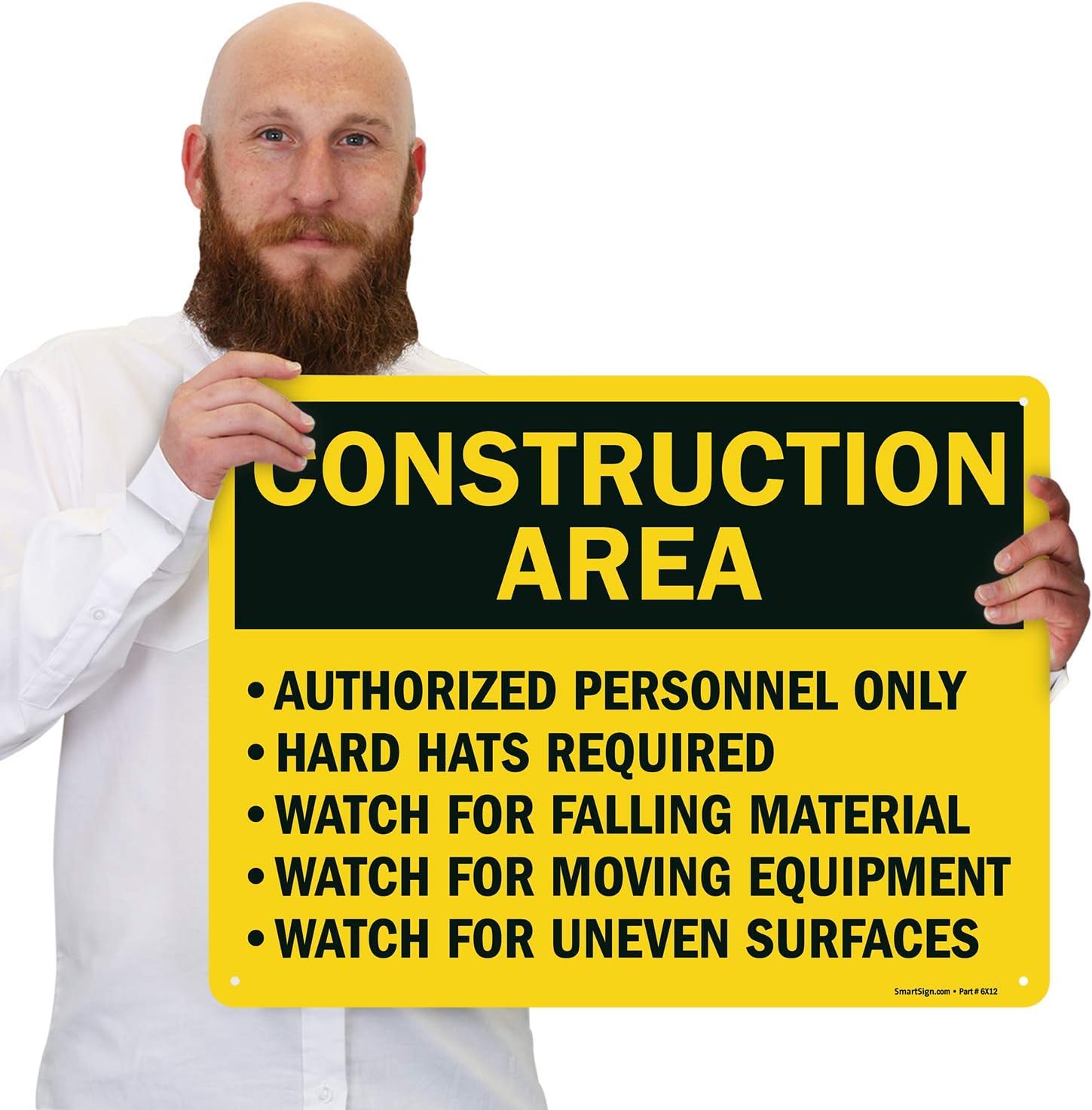 SmartSign 18 x 24 inch “Construction Area - Authorized Personnel Only, Hard Hats Required” Metal Sign, 80 mil Laminated Rustproof Aluminum, Black and Yellow
