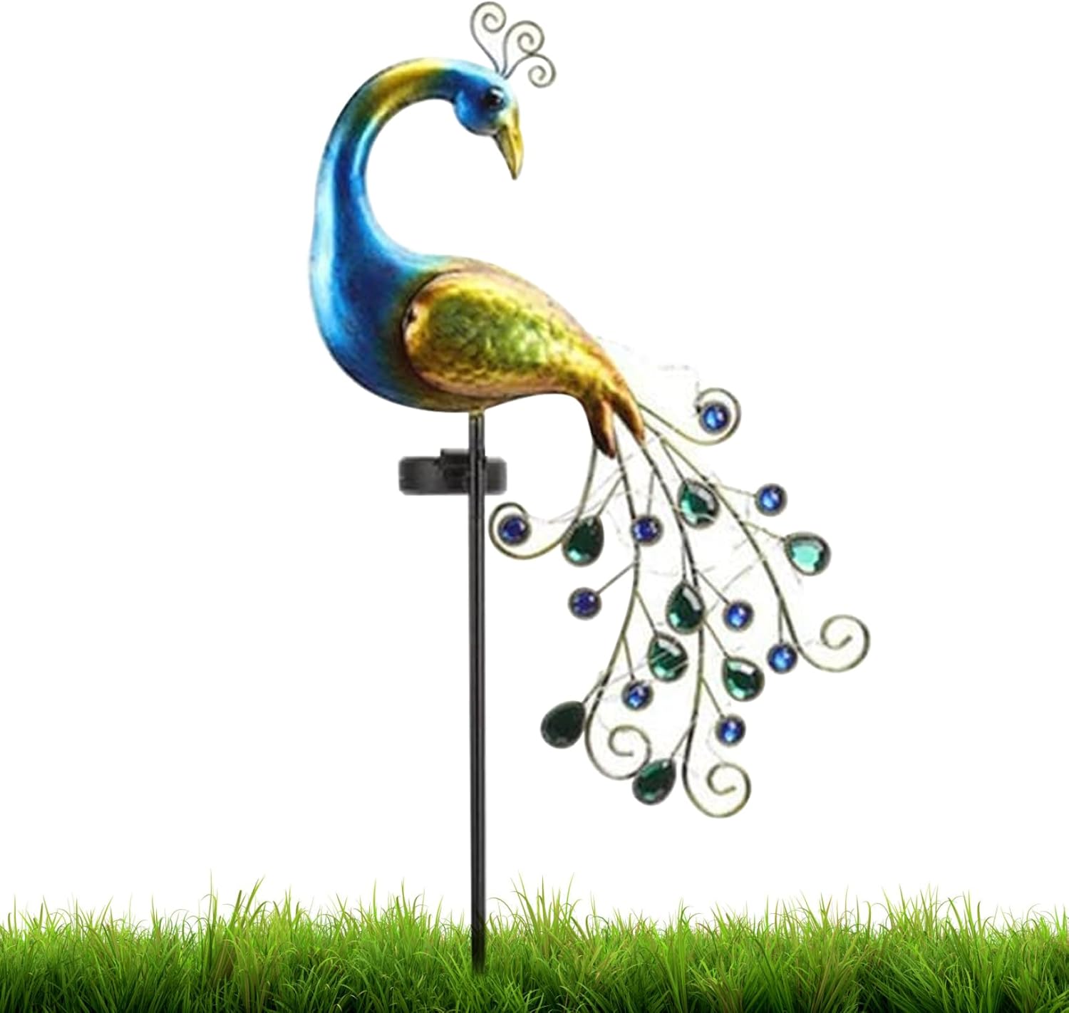Description: Bring beauty and light to your garden with the Solar Light Peacock Garden Light. This stunning metal peacock stake light captures the essence of nature with its intricate details and vibrant hues. Featuring a powerful 300mAh solar panel, this garden light lasts up to 8 hours when fully charged powering a soft LED light that illuminates your outdoor space in a magical way. Perfect for any garden or backyard, the Solar Light Peacock Garden Light is sure to add a touch of modern elegance to your outdoor decor. Specification: Product Name: Outdoor Solar Peacock Light. Product size: 32x43x111 cm/12.60x16.93x43.70 inch. Light source: yellow light. Switch: On/Off button. Main material: Iron+PP. Power supply mode: solar panel-battery. Battery: 300mAH NiMH. Solar panel: 40*40 2V 100mA monocrystalline silicon. Induction: light induction. Detection parameters: day/night. Charging time: 8-10 hours. Working time: light up to 6-8 hours. Note: For manual measurement, please allow slight errors in size. The colors may exist slight differences due to different screens. Package Including 1 * Solar Light