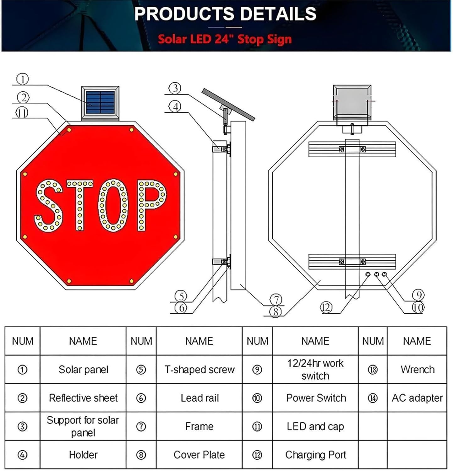 The LED Solar Traffic Safety Stop Sign is an innovative solution designed to enhance road safety while being environmentally friendly. Made from a durable aluminum alloy combined with a solar panel, this stop sign is equipped with bright, blinking LED lights that significantly increase visibility for drivers. Its solar-powered feature allows for versatile placement in any area with ample sunlight, making it ideal for various scenarios. **Key Features:** - **High Visibility:** The stop sign features red LEDs around the perimeter and a white LED in the center, ensuring it stands out even from a distance of over 800 meters. - **Durable Design:** Constructed from an aluminum plate and reflective film, it is built to withstand the elements with an IP65 waterproof rating. - **Extended Working Time:** After a full charge, it can operate continuously for 7-10 days, providing reliable performance without the need for frequent maintenance. - **Flexible Installation:** Measuring 60x60 cm (24x24 in) or 80x80 cm (32x32 in), this sign can be easily mounted in various locations such as highways, ramps, construction sites, and near schools. **Package Includes:** - 1 x LED Blinking Stop Sign - 1 x Solar Panel (Note: Mount is not included; please prepare your own.) **Installation Tips:** 1. Before installation, ensure the LED light functions properly by turning on the switch and covering the solar panel to simulate nighttime. 2. Position the solar panel to maximize exposure to direct sunlight during the day for optimal charging. 3. If the sign will not be used for an extended period, turn off the switch to preserve battery life. Choose the LED Solar Traffic Safety Stop Sign for a reliable, eco-friendly solution that enhances safety and visibility on the road.