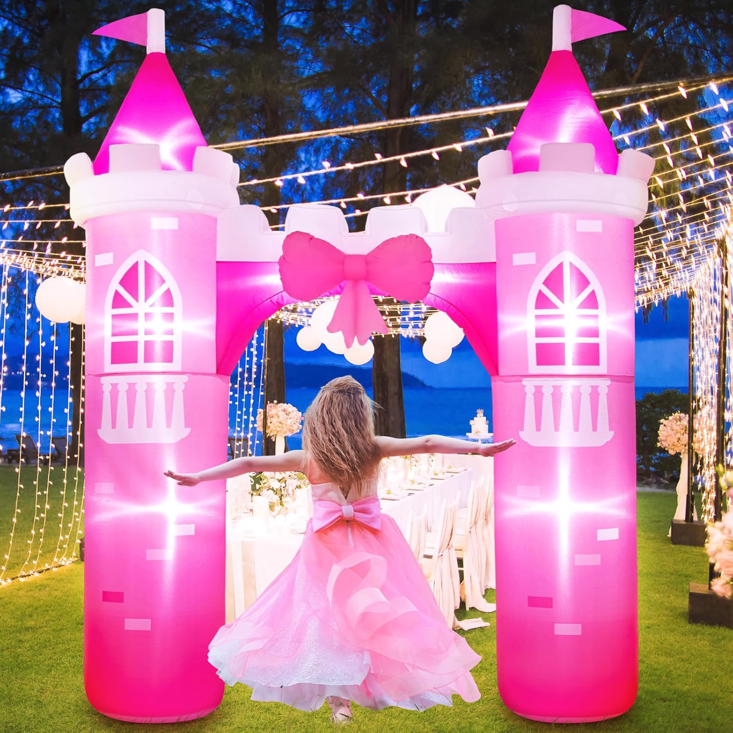 Features: Elevate your child's party experience to a royal event with our princess castle inflatables. Whether it's a birthday surprise or a themed gathering, this enchanting addition will make every child feel like they're stepping into a world of wonder and imagination. Note: Supervision is advised when children are near inflatables. Keep the inflatables at a safe distance from heat sources and sharp items to protect them from damage. Specifications: Material: polyester Color: multicolor Size: 9.2 feet Package includes: 1 x Pink Princess Castle Inflatables Notes: Manual measurement, please allow slight errors in size. The color may exist a slight difference due to different screen displays