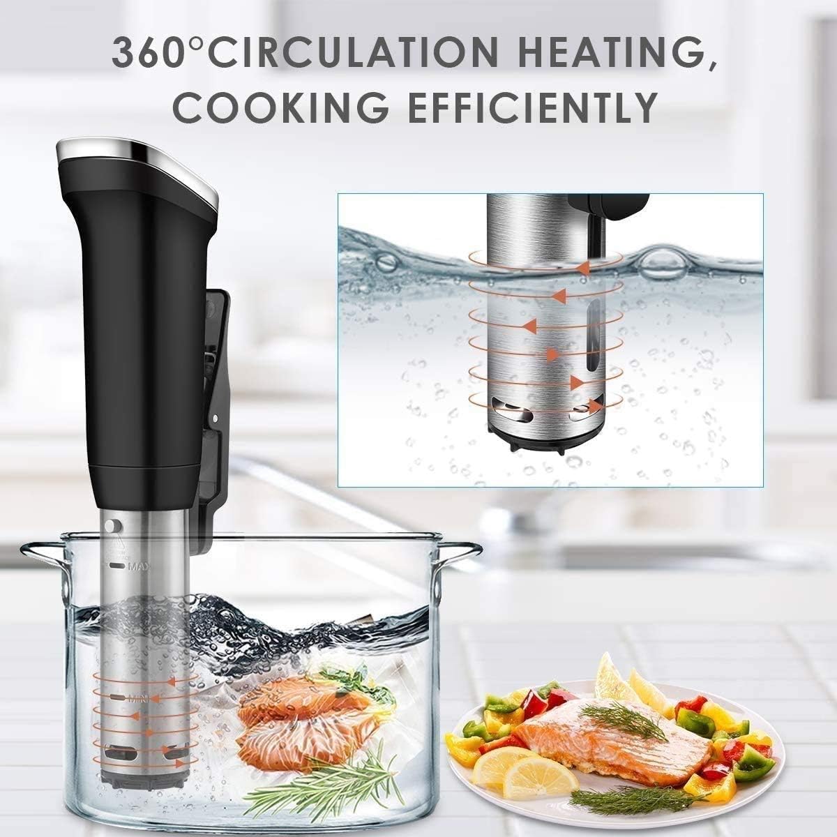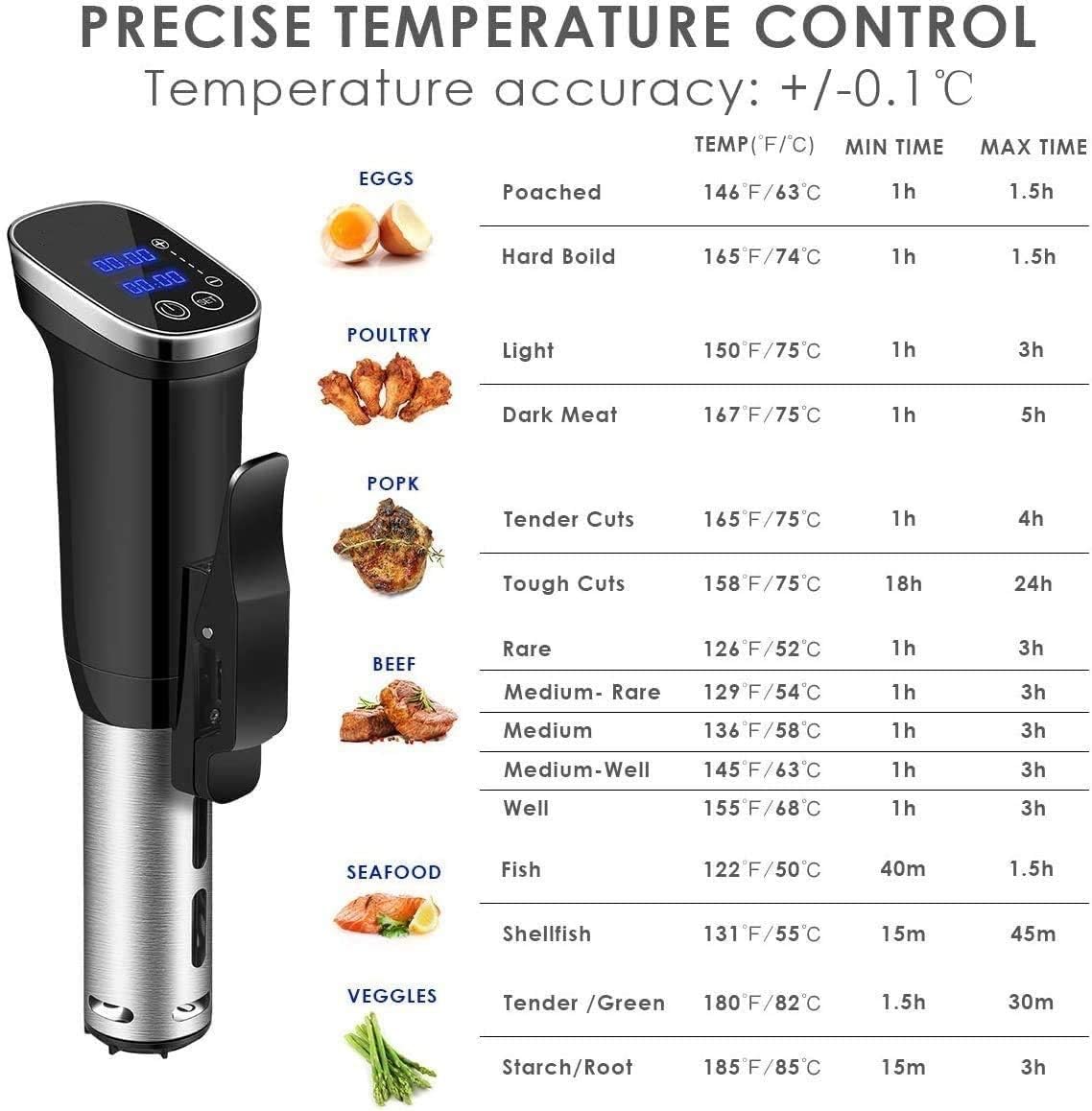 Many of the benefits of vacuum cooking are that they help make cooked food a better texture and tenderness. They also help to improve the flavor of food. Just connect the precision cooker to any pot, add water, and then put the required food in a sealed bag. Just press the button on the device to start cooking. The ideal shell can provide long-term service for our soud vide. Working voltage: 110V-220V Working frequency: 50 / 60Hz Product power: 1000W Security: IPX7 Pump material: stainless steel Technical Information: Power cord length: 1.0 m Capacity: up to 10 liters Timer: 99 hours and 59 minutes Directional pump: 360 degrees Temperature stability: +/- 0.1 ° C Heating method: PTC heating element Temperature range: 32 ° F to 194 ° F / 0 ° C to 90 ° C Rated voltage (appliances or chargers): AC110-240/50HZ;