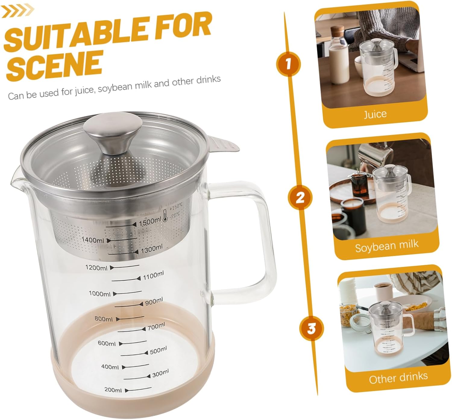 Package List 1 x Soybean Milk Filter Features -Capacity: 1500ml milk strainer -Material:Stainless steel, glass, silicone tea filter strainer -Color:Multi pitcher with strainer -Size:17.00X12.00X21.50cm/6.68X4.72X8.45in juice container with strainer - You will have a using experience because of the workmanship of this filter filter strainer. - Reliable material, flexibility and excellent durability for , practical for daily strainer fine mesh. - Can be used for squeezing juice, soy milk and other beverages, easy to clean and convenient to use strainer. - Easy to filter, convenient and simple to operate, giving huge convenience to daily life soy milk strainer. - The wonderful strainer is reliable and useful, which can filter soy milk, coffee, tea, juice and so on. milk strainer cupGoods Descriptionfilter strainer Also, it can be present choice for your friends, they will like it, will be one of for home use.milk strainer cup This strainer can be used in kitchens, restaurants and more, with excellent and wonderful workmanship.juice strainer container Come and take it home!