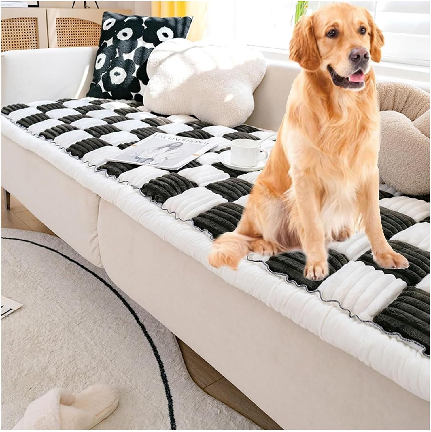 Specification:Item: Funny fuzzy Cream-Coloured Large Plaid Square Pet Mat Bed Couch CoverMaterial: Cotton, Hand-sewnStyle: Chic, Scratch-Resistant, ComfortableApplications: Sofa cushions, floor cushions, bay window cushions, bedside cushions, pet cushionsPackage Contains: 1 PCS Funny Fuzzy Couch CoverProduct Size:45x45cm/ 17.7x17.7in50x50cm/ 19.7x19.7in70x150 cm/27.6x59.06 in70x180 cm/27.6x70.9 in70x210 cm/27.6x82.7 inPlease be sure to measure the size of your own sofa cushion, and make sure that the size range of this sofa cover is suitable for your sofa before purchasing.Notes:1. Due to different manual measurements, please allow for slight size differences.2. Due to differences in different monitors, the picture may not reflect the actual color of the item