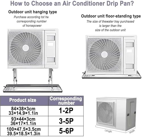 Introducing our premium air conditioner drip tray, expertly designed to effectively manage leakage and dripping from outdoor AC units. This essential accessory is crafted using advanced stamping integrated molding technology, ensuring exceptional durability and resistance to rust and impacts, making it a long-lasting solution for your cooling needs. One of the standout features of our drip tray is its integrated drain pipe, which efficiently collects excess water. This collected water is perfect for repurposing in your garden or for watering indoor plants, promoting sustainable water usage and reducing waste. This makes our product not just a practical accessory, but also an eco-friendly choice for conscientious homeowners. Available in multiple sizes to cater to various air conditioning systems, including window units and HVAC systems, our drip tray is versatile and convenient. Choose from sizes: 1-2P (84x39x3.5cm), 3-5P (93x44x3.5cm), or 5P (100x47cm) to find the perfect fit for your setup. Included in the package are everything you need for a seamless installation: the AC drip pan with drain, a 5m drain hose, a fixing clip, and anti-rust iron wire. Note that slight size variations may occur due to manual measurements, but each unit is designed to meet high-quality standards. For any questions or assistance, our customer service team is ready to help. Enhance your air conditioning experience with our reliable and efficient drip tray, and enjoy a cleaner, drier environment while conserving water.