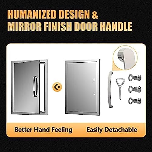 Elevate your outdoor cooking experience with our premium outdoor kitchen cabinet, expertly designed for durability and functionality. Made from high-quality 304 stainless steel, our BBQ access doors are engineered to endure the elements, ensuring your outdoor kitchen remains both stylish and practical for years to come. The unique rounded bevel design not only enhances strength but also adds a sophisticated aesthetic, making these doors a perfect fit for any outdoor kitchen setup. Our stainless steel grill doors feature double-lined construction and recessed handles that combine elegance with ease of use. The hidden handle design reduces the risk of accidental bruising while providing a comfortable grip for seamless operation. With pre-drilled frame holes, installation is straightforward, allowing you to dive straight into enjoying your outdoor gatherings. Constructed with 1.5mm thick stainless steel, our doors offer superior sturdiness compared to standard 1.2mm options, ensuring exceptional durability and resistance to wear. The built-in magnetic closure keeps the doors securely shut, enhancing the practicality of your outdoor kitchen. Whether you're hosting a barbecue with friends or preparing a family feast, our stainless steel cabinet doors offer the ideal storage solution for all your outdoor kitchen accessories, making your cooking space more organized and enjoyable.