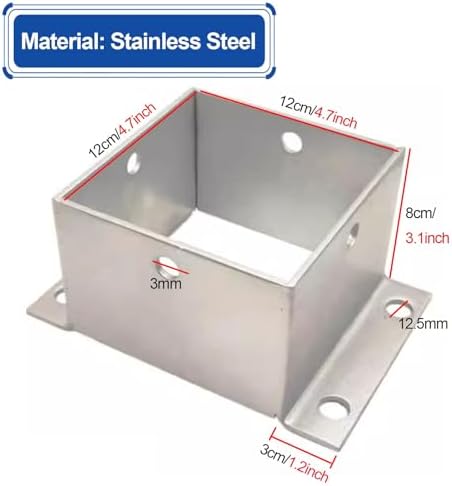 Enhance Your Outdoor Space with Our Versatile Mailbox Post Base Our mailbox post base is designed for all-around use, providing the stability and support you need for various outdoor applications. Crafted from high-quality stainless steel, this durable post base features a powder-coated finish that ensures longevity, even in challenging weather conditions. Whether you are setting up mailbox posts, porch railings, balcony fences, or deck handrails, this versatile base accommodates a wide range of post types and sizes, making it an essential addition to your outdoor decor. **Specifications:** - **Material:** Stainless steel - **Size Options:** Inner diameters ranging from 4cm to 20cm, with a height of 8cm and a robust wall thickness of 4mm. **Key Features:** - **Rustproof and Durable:** Constructed from strong stainless steel, this post base resists rust and corrosion, ensuring it remains reliable for years. - **Sturdy Support:** Designed to provide excellent support and protection for your posts, enhancing both functionality and aesthetics. - **Elegant Design:** The heavy-duty construction not only secures your posts but also adds a polished look to your outdoor space. - **Multi-Purpose Use:** Ideal for various applications including deck brackets, stair railings, table legs, and more, making it a great tool for both DIY enthusiasts and professionals. - **Easy Installation:** Each base comes with 4 expansion bolts and 4 self-tapping screws, allowing for simple attachment to wooden or concrete surfaces. **Package Includes:** - 1 x Deck Post Base **Important Notes:** - Manual measurements may result in slight variations of 1-3cm; please understand. - A mild odor may be present upon opening; it typically dissipates within a few days. - Color discrepancies may occur due to lighting conditions; please refer to the actual product. Elevate your outdoor projects with our reliable mailbox post base, designed to combine function and style seamlessly.