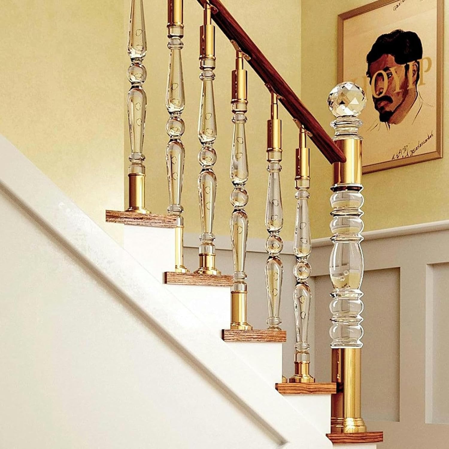 Our metal balusters are a great choice to update your deck or stair, even exposure outdoor environment. They can complement any environment seamlessly. Specification:- Material: Acrylic and Stainless Steel- Color: Gold , Silver- Diameter: 6cm (2 3/8in)- Base Diameter: 9cm (3 1/2in)- Height: 80cm(31 1/2") , 85cm(33 1/2") , 90cm(35 3/8") Features:- Resistant to scratches, cracking, and rust.- Provide extra security while decorating your home.- Sturdy arylic and stainless steel material for strength and durability.- Armrest Bracket can be adjusted to fit different installation scenarios.- Thickened base is strong and stable, and provides stronger supporting capacity. Package Includes:- Stair Balusters- Armrest Brackets- Base Covers- Mounting Screws Please Note:- Any horizontal handrails and end posts are not included.- Please allow a slight dimension difference due to different manual measurements.- Due to the light and screen setting difference, the item's color may be slightly different from the pictures. Quality Service:- If you have any issues with our products, please feel free to contact us.