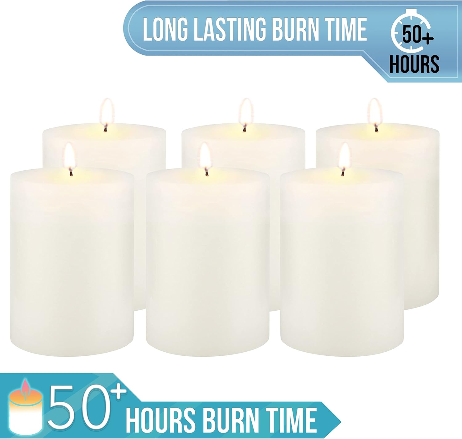 | Model Name | Tall 3 x 4 Inch 50 Hour Long Burning Unscented Wax Flat Top |