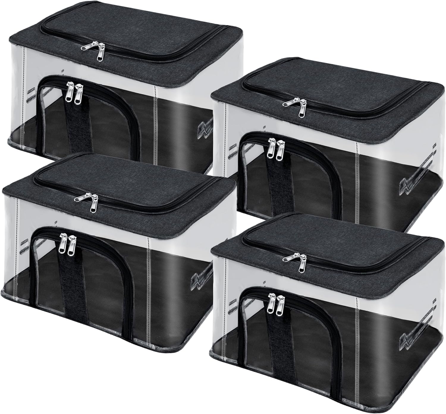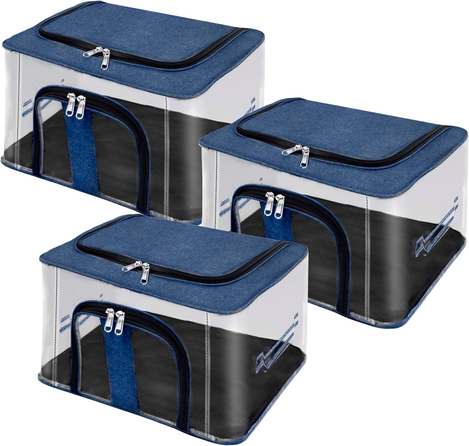 Brand : Storite Material Type : Nylon PVC Transparent Closure Type : Zipper Product Descriprion : It features a front and top zipper opening, with two carry handles, and a transparent front window. A fully zippered closure protects items from dust, pest, and water damage while the large clear window allows you to see contents at a glance. Excellent baby clothes storage box for just keeping things organized in closet or shelf or basement and making it infinitely more orderly. A busy life requires us to arrange everything in an orderly manner. so we has launched a perfect visible storage box for your daily clothing supplies, it is a great choice for you to save time and space ,which greatly improves the utilization rate of the wardrobe space.