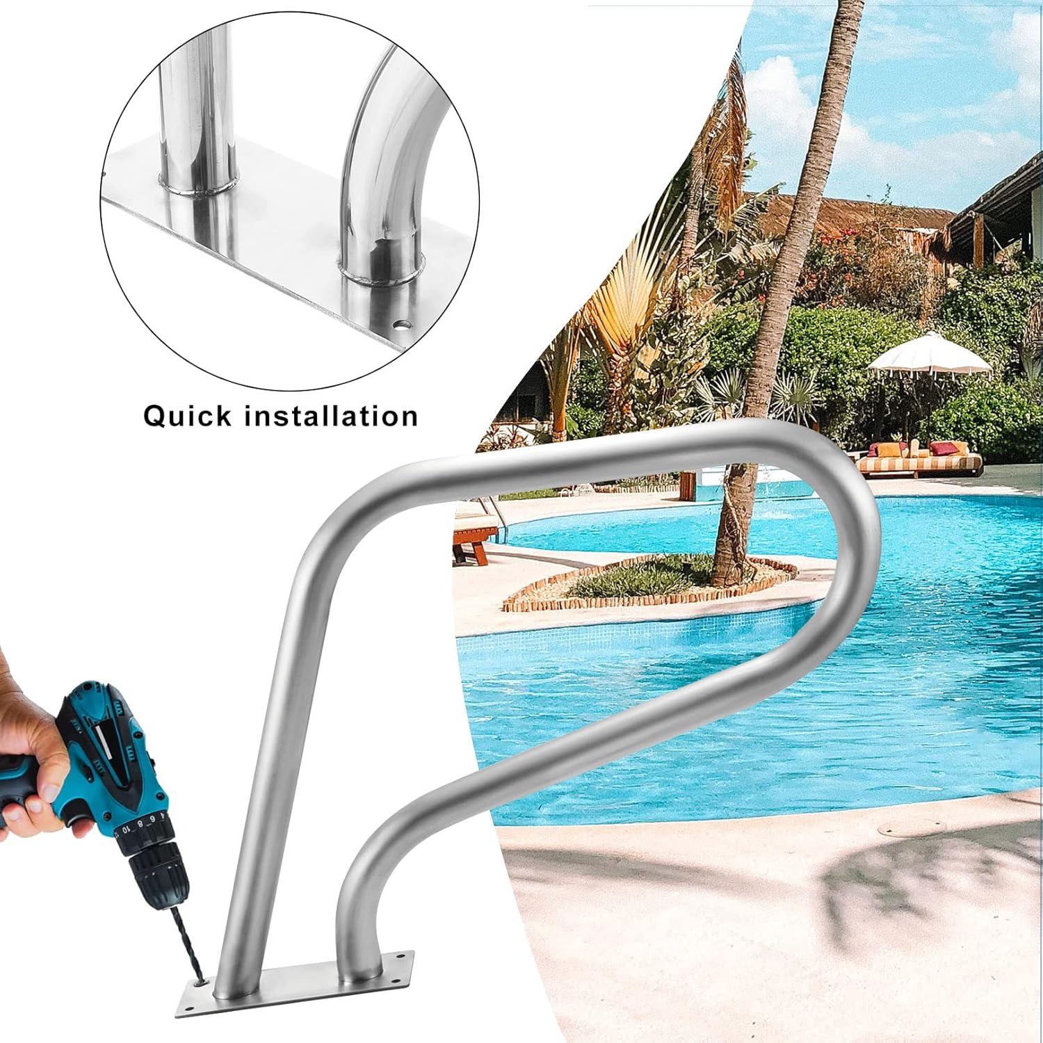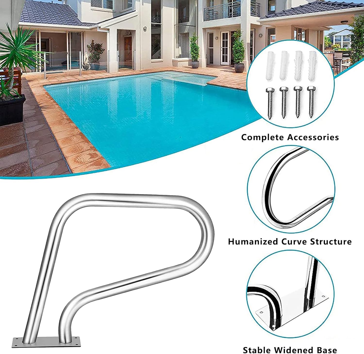 Our swimming pool handrails are made of strong and durable stainless steel material, strong load-bearing, anti-corrosion, strong safety, suitable for indoor and outdoor, enjoy life.This armrest adopts an ergonomic design, which is more suitable for people to enter and exit the swimming pool. It can carry a weight of up to 440 pounds. Ensuring a safe, sturdy support for entering and exiting the water. Product Specifications - Material: 304 stainless steel - Product size: 81x57cm - Color: Sliver - Load capacity: 440 lbs (Maximum) - Tube thickness: 1.0 mm/1.2mm/1.5mm Package Includes - 1 x Stainless Steel Pool Handrail - 1 set of accessories Product Advantages - Premium 304 stainless-steel material is antirust and durable - Humanized curved structure ensures easy grasp - Polished surface with great gloss can remain for a long time - Slightly sloped design for getting in and out of the pool easily - Quickly mounts Attention: - Please allow 1-3cm measuring deviation due to manual measurement. - If you have any questions about our products, please send us an email, we will reply you within 24 hours due to the time difference. We will provide you with the best service.