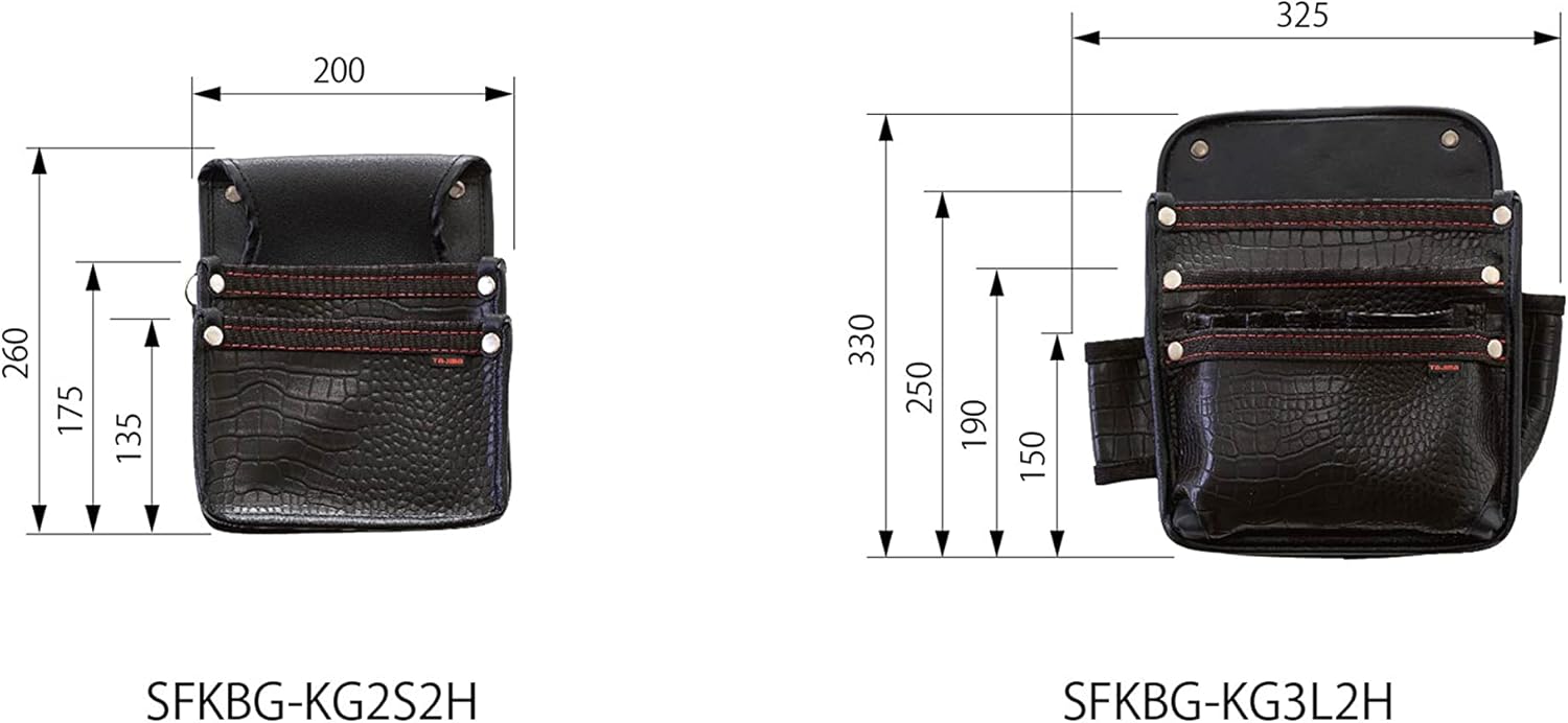 2 round safety pads for improved removability; *Safety holder sold separately. You will need a safety holder for use; The safety twin hook has been improved on and off with 2 safes; High strength and supple durable synthetic leather; Crocodile texture with a distinctive luxury and presence; Carpentry specification waist bag for storing ink, markers, and nail hiters; Reinforced with abrasion-resistant tarpaulin for easy reassembly around the waist. Removable safety that can be attached to the belt from later. Uses: For storing tools.