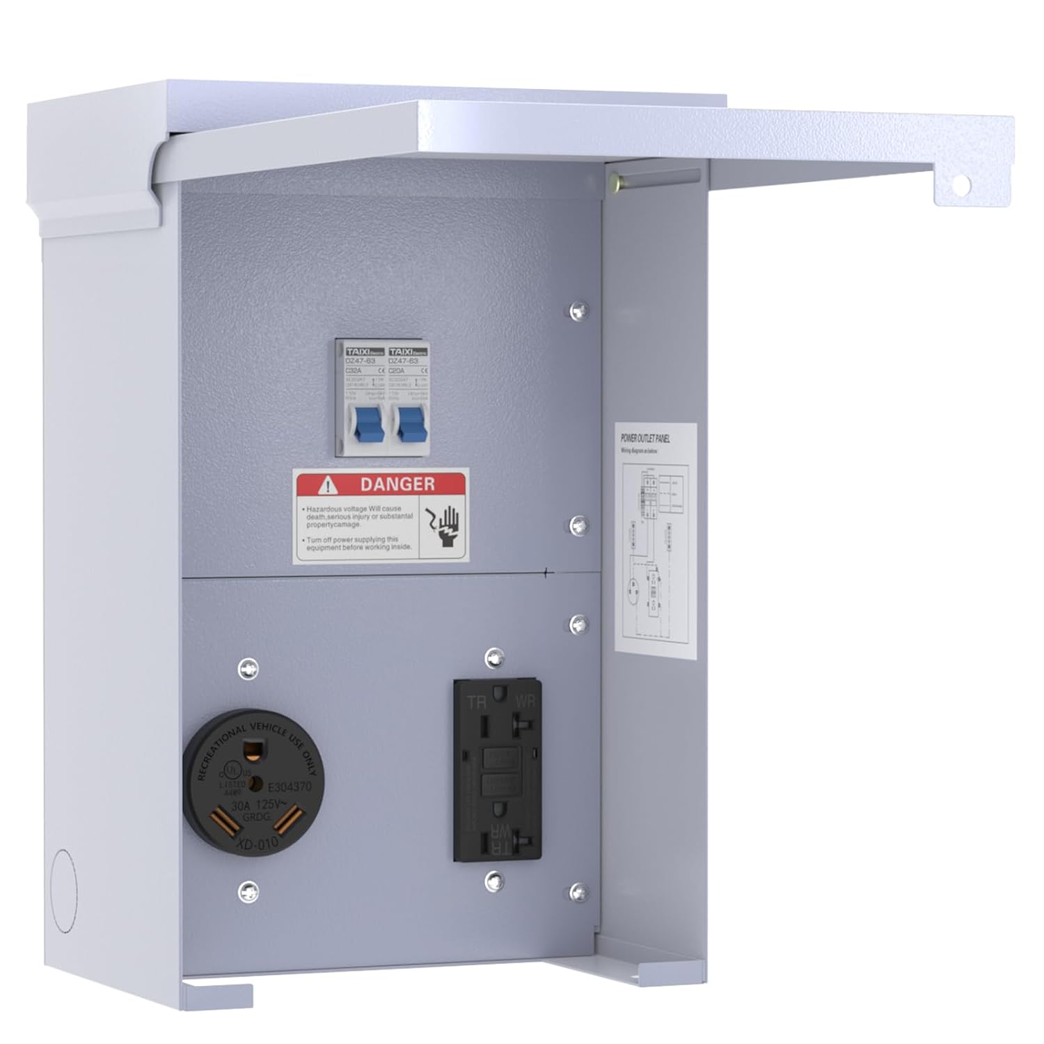 | Included Components | 50 30 20 amp rv power outlet box,Rubber Grommet,Expansion tube. |