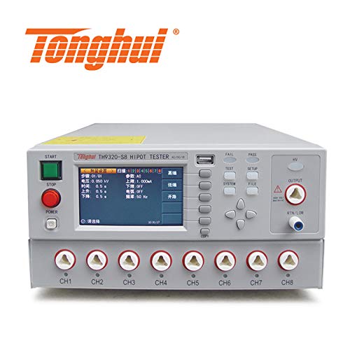 Features ■ Output voltage: AC:5kV/20mA; DC:6kV/10mA ■ Test voltage of insulation resistance:0.10kV-1.00kV Test range of insulation resistance: 1MΩ-1000MΩ ■ 480×272 dot-matrix, TFT-LCD display ■ Provide 4 channels (-S4), 8 channels (-S8) scan interface ■ Rapidly discharging and arc detection ■ Randomly set voltage rising time and testing time in 999.9 seconds; Freely set waiting time for insulation resistance ■ Hold 20 testing steps; 4 testing modes selectable ■ Brand new operation interface and concise interface operation design ■ Lock keyboard Brief Introduction ■ TH9320-S series AC/DC withstanding voltage/insulation resistance tester is an economical and intelligent safety tester with the characteristics of small size, light weight, pleasing appearance and easy operation. TH9320-S series can be widely used in the safety tests of household appliances, transformer, electrical equipments and components.