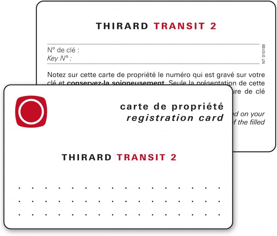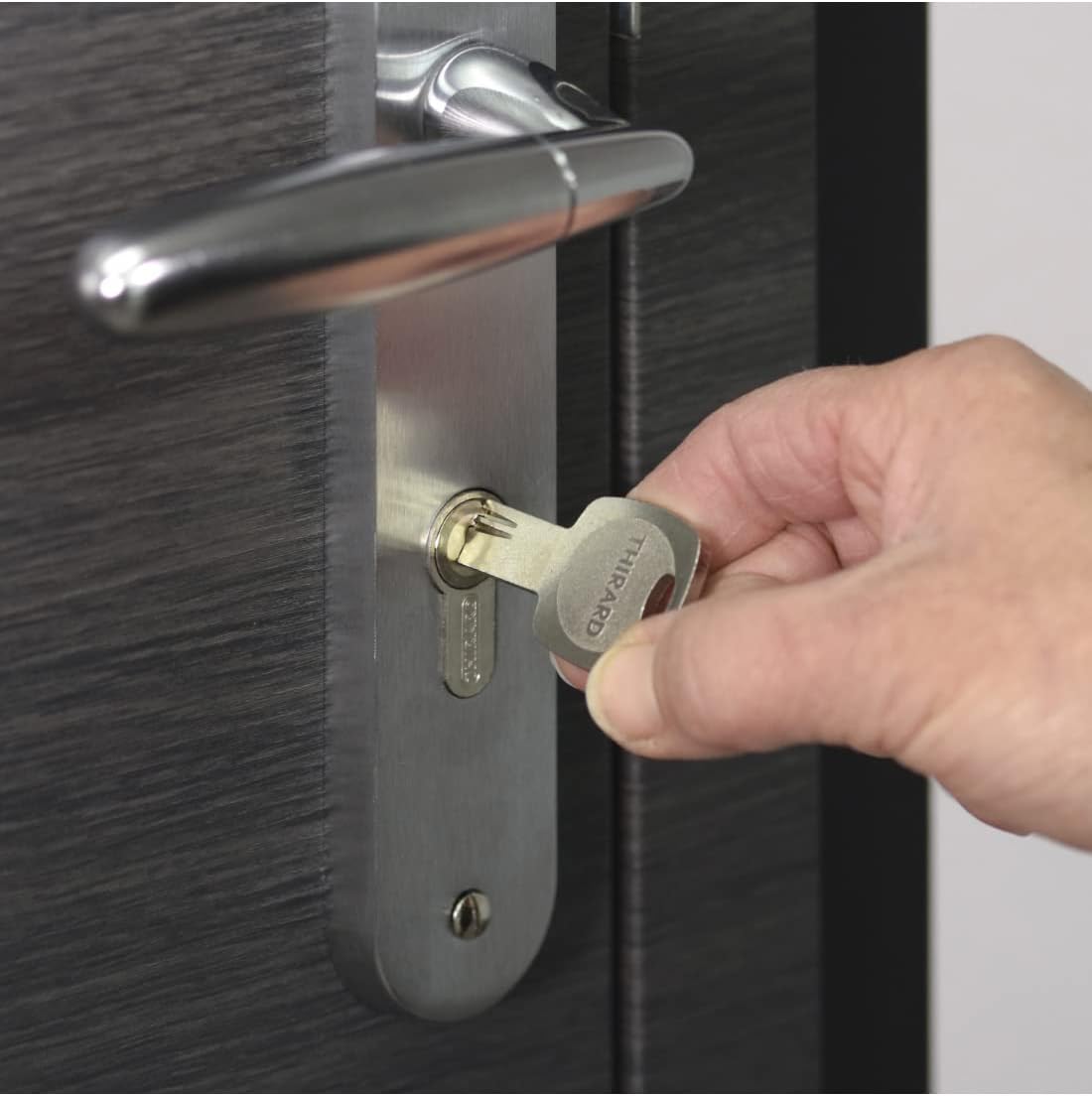 For 100 years we have been equipping your home, for your comfort and safety. We offer complete closure solutions to integrators in a variety of fields, ranging from mailbox to energy distribution, door manufacturers and transport, whether sea, road, air or rail. THIRARD has many years of experience to meet any type of demand. From design to manufacture, THIRARD develops all types of closure on demand and this, whatever the field of application (safety for electrical energy, nuclear, wind, gas, water, civil safety, roads….). To ensure success and meet your needs, THIRARD designs and manufactures the tooling for machining your safety systems. In addition, our design office takes care of your request and follows your project to the manufacturing workshops. THIRARD, security manufacturer since 1920, offers you here: Lock Cylinder 45 x 50 mm - TRANSIT 2. Brass European profile. 8-pin mechanism against picking. Needle drilling protection + 1st pin + hardened steel pusher. Protection against burglary of the protruding part of the cylinder (anti-snap). Anti-snatch lock. Comes with reversible flat keys nickel-plated brass and property card, necessary for any key reproduction. Dimensions: 45 x 50 cm