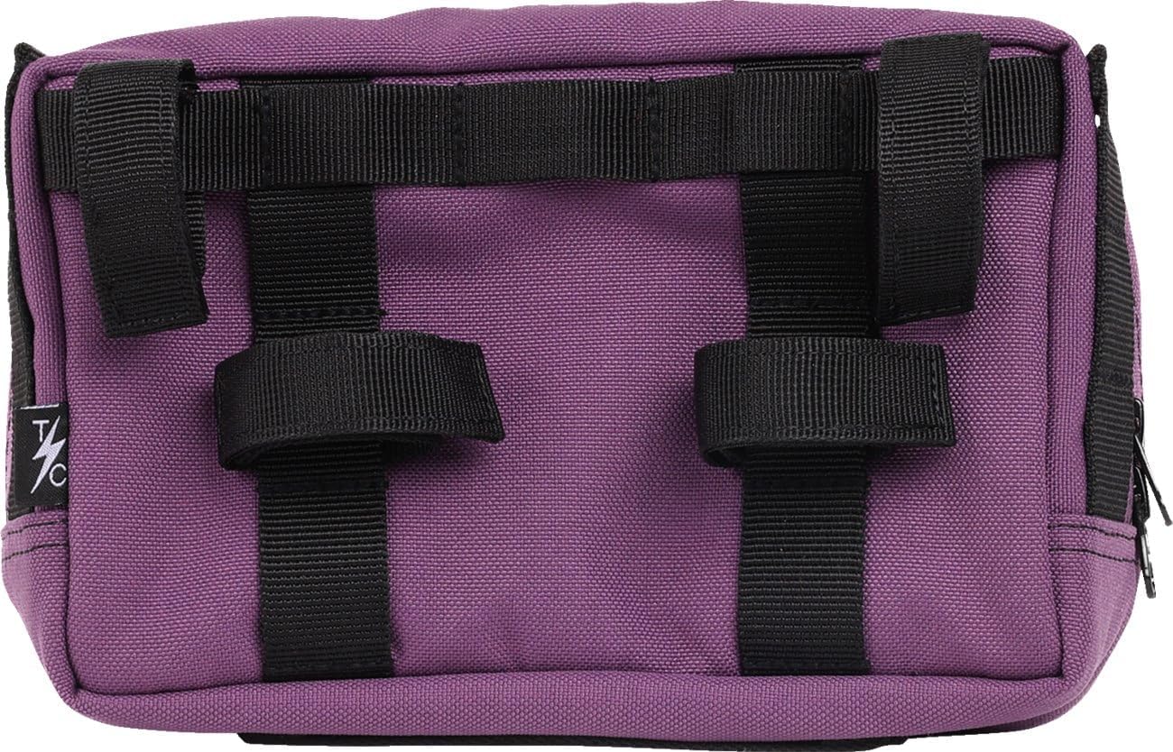 Handlebar Bag Plus is slightly larger than the original handlebar bag and features a microfiber pocket to protect glasses. 1050D nylon fabric. High vis orange interior. 9in. x 5in. x 4in. of storage. YKK zippers. Works great on handlebars, risers, and sissy bars. Lateral and horizontal webbing for easy universal attachment. Front pocket lined with microfiber, specifically designed for glasses. Four 3/4in. x 6-1/2in. nylon straps for attaching. Four interior pockets.