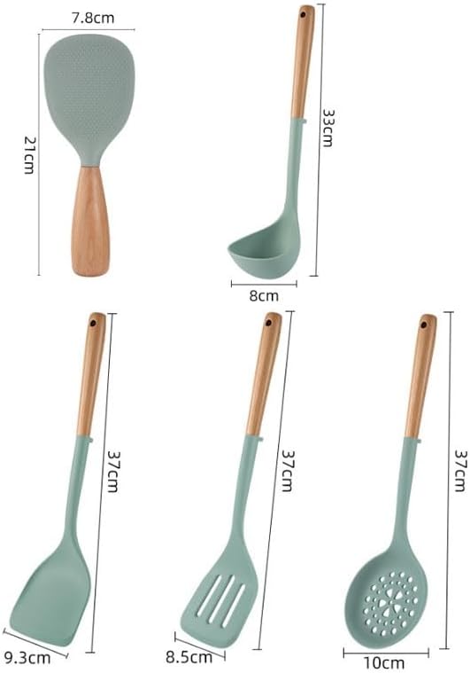 Product Name: Spoon and spatula setMaterial: Silicone + stainless steel + nylonSize: As shownColor: As shownFunctions: Cooking, bakingThe set includes: Frying spatula, soup spoon, ladle, etcCrossbody bag:Shovel and spoon set *1 set(Excluding display items)Attention:1. Due to manual measurement, please allow 1-2cm error.Please understand,Thank you2. The actual color of the product may be slightly different from the color shown in the picture. please refer to the actual product