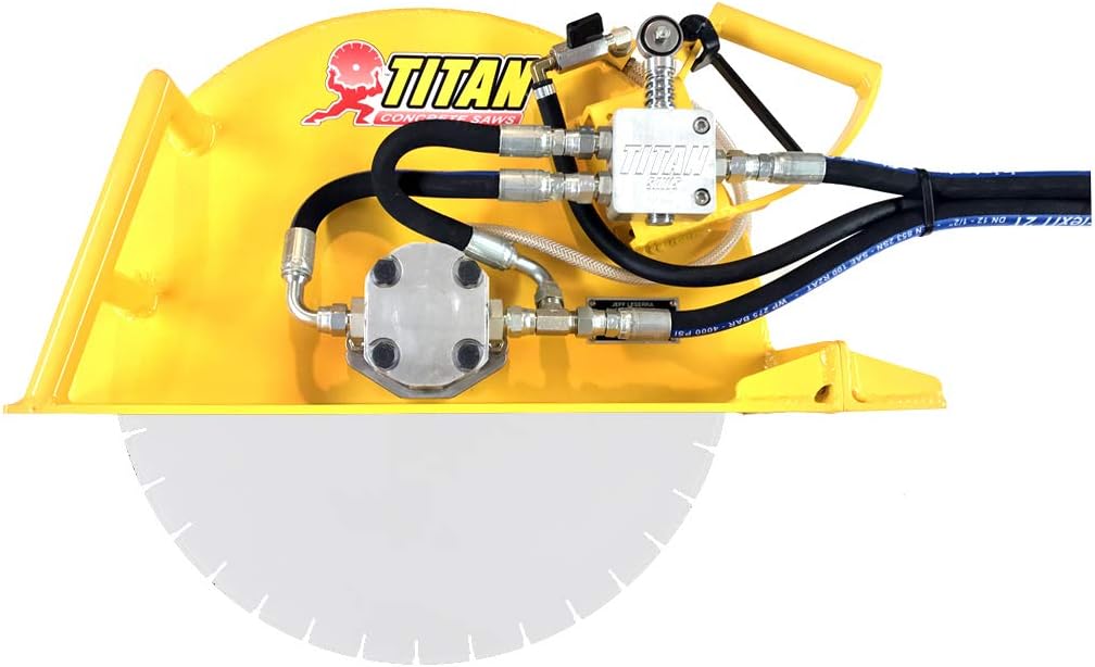 Made in America - Titan 21 - 21" Complete Hydraulic Handsaw - Includes 3' Hose Whips with 1/2" Flush Face Quick Connects 12 GPM Motor engineered with an Internal Case Drain with a Pressure Relief Valve to extend shaft seal life. Our patent pending Titan Handsaws utilize numerous engineering breakthroughs to make the most reliable, simple to use, and easy to refurbish hydraulic handsaw on the market today. Standard Features: Sturdy all welded aluminum powder coated frame. Heavy Duty large duel position front handle for easy control. Water shut-off valve and manifold block positioned to avoid any chance of damage. Highly efficient hydraulic motor choice for both strong blade speed and torque delivery. All saws include standard 6 foot hose whips including flush face quick disconnects. Hydraulic handsaw motors used vary based on power pack engine & pump sizes. Stainless steel blade collar held in place with stainless “retainer washer & screw attached to motors center tapped shaft. Our hydraulic control valve will no longer have o-rings or seal leaks, the new valve has a life-time warranty against leaks. Leading our industry with our new design improvement to our handsaw bolt-on replaceable Rear Splash Guard, no more welding up the holes and cracks to repair.