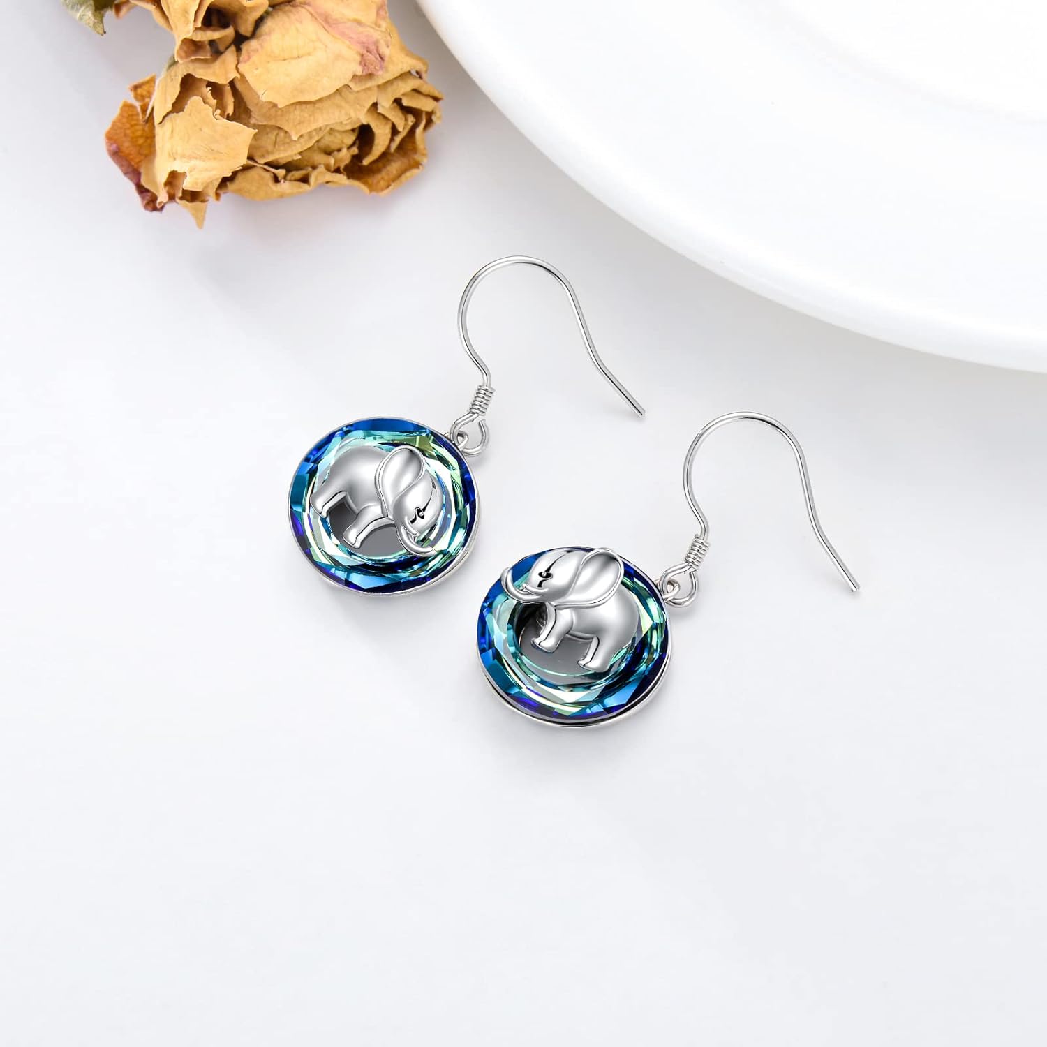 • ❤ STERLING SILVER CRYSTAL EARRINGS ❤ s925 sterling silver elephant earrings with 14k white gold plated, Nickle-free, Lead-free and hypoallergenic. Protect and safe for sensitive skin.14k gold-plating,Make the metal surface smooth and durable, not easy to fade, rust, tarnish, turn skin green.
