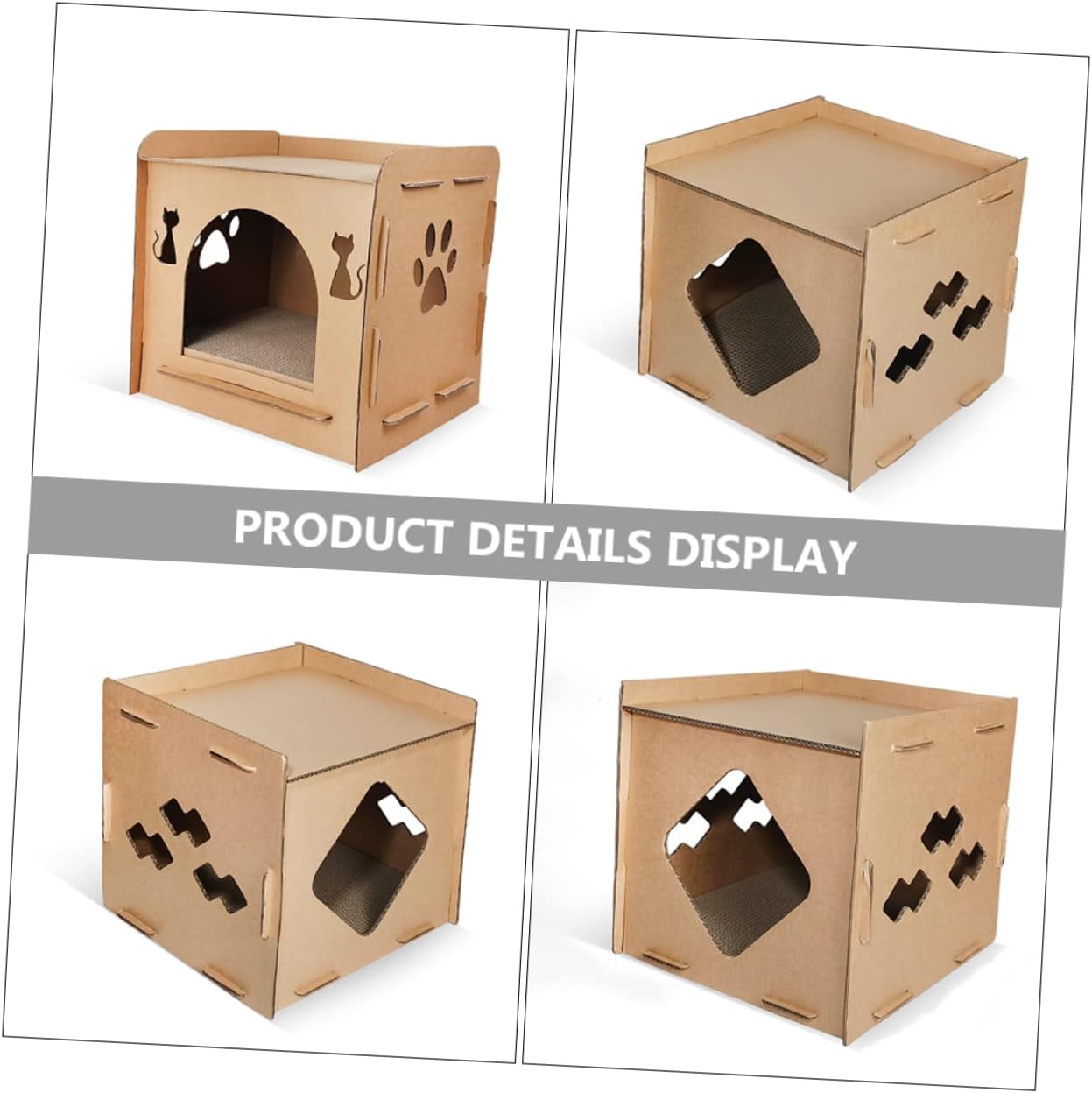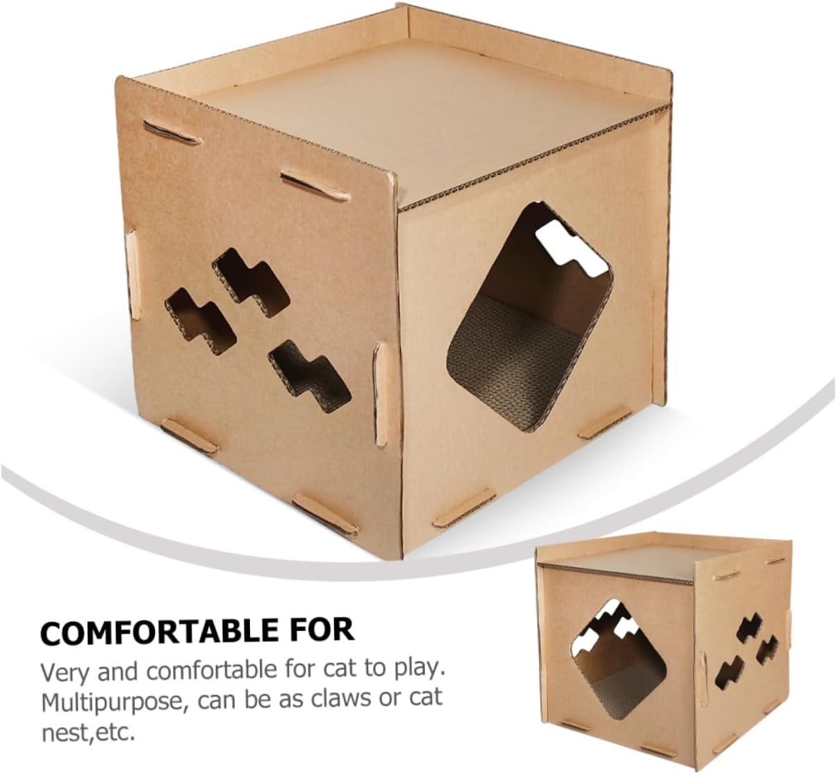 Package Include 1 x Paper Cat House 1 x Scratching Board Characteristics -Color:Khaki cat scratcher cardboard -Size:43.00X40.00X39.00cm/16.90X15.72X15.33in cardboard cat house -Material:Corrugated paper cat scratchers for indoor cats -With details, comfortable to use long time. With it, the cat won't scratch your furniture cat house indoor. -Special treatment makes this scratcher helpful for grinding pet cats scratch pad for cats cardboard. -Comfortable cat lying, easy to use. Cat house and cat scratching board complete set, providing cat play experience cardboard. -Very and comfortable for cat to play. Multipurpose, can be as claws or cat nest,etc double cat bed. -Made of thickened corrugated paper, strong and wear-resistant, to keep household scratcher house.Goods Informationscratch pads for cats This cat scratcher is a plaything pet for Halloween, Christmas, New Year, or daily use.cat scratcher house want to find a unique and warm house for your pet? Then, you miss our pet cat house, using corrugated paper material of and fine craftsmanship, warm and comfortable