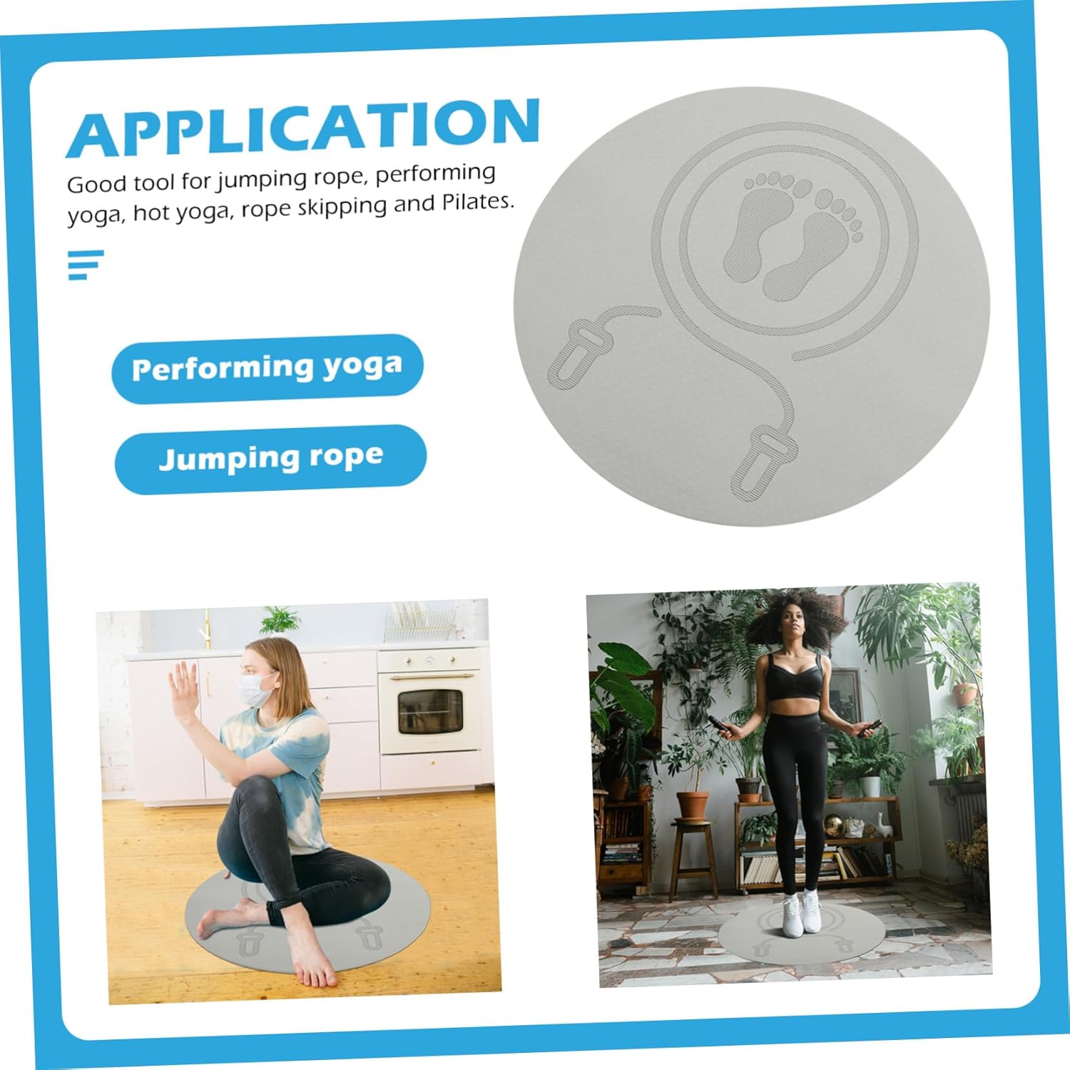 Package List 1 x jump rope mat Features -Product Info:Anti-slip skipping rope mat -Material: TPE round yoga mat. -Made of , can be used for a long time, and is not easily deformed and damaged jump rope mat indoor. -Appropriate size and thickness, ensures comfort for people to use circle jump rope mat. -Non-slip, sweat-absorbing, elastic, and shock-absorbing, making you convenient for daily exercise skipping rope mat. -The workmanship of this product is perfect, and you will have a good experience in using it jump rope and mat. -With no trace-rebound texture, shock-absorption and makes your exercise safer round jump rope mat.Goods Descriptioncircle jump rope mat It is not easy to deform, which brings you of convenience.jump rope and mat If you are looking for a professional and workout mat, then your research is here.round jump rope mat That's because our product can meet your needs.jump rope mat Using high-class materials, practical and durable