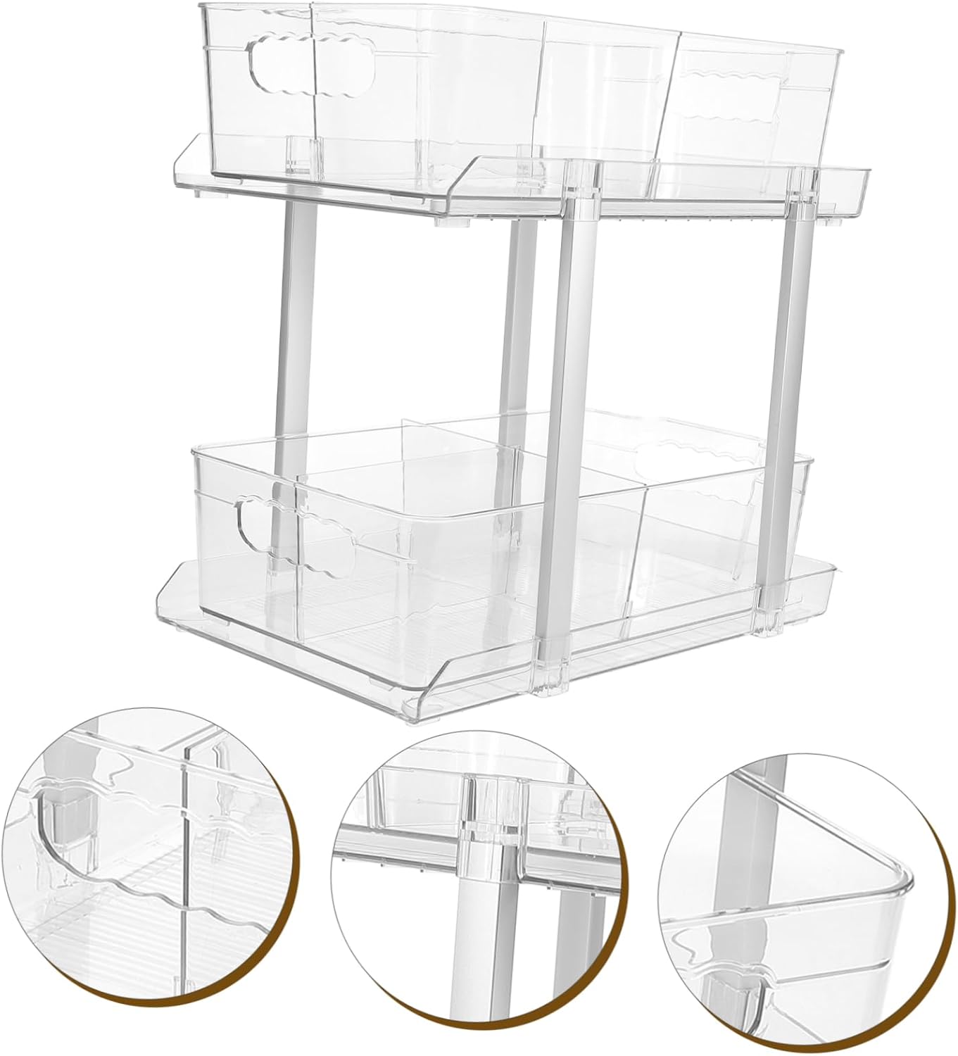 Package Include 1 x storage rack Characteristics -Size:37.00X35.50X22.80cm/14.54X13.95X8.96in home supplies -Material:Plastic storage stand -Color:Transparent dresser organizer countertop - Simple structure, strong bearing capacity, it can store and organize more items, bringing you great using feeling countertop shelf. - Double layers can help you organize different items more easily, and it enables you to find things faster makeup organizer for bathroom countertop. - Detailed workmanship, can create a new look to your place, also a wonderful decoration dresser storage holder. - Mainly made of plastic material, this desktop storage shelf is with excellent texture and longer service life countertop bathroom organizer. - It can be well applied to your bathroom, bedside or any places, helping you to store cosmetics or other sundries bathroom countertop organizer.Goods Informationcountertop vanity organizer workmanship, reasonable double-layers design, can easily help you to store your sundries like keys, cosmetics and jewelries, make your place tidier and bring your home a new look.desktop toiletry organizer This practical and sturdy sundry shelf is mainly in adoption of reliable material, convenient and can serve you for a long period