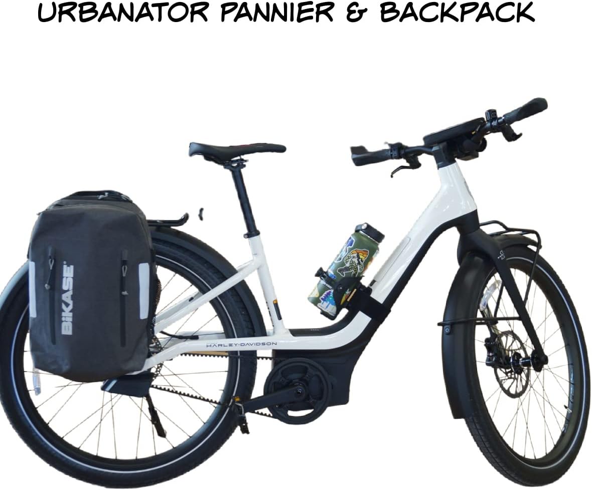 The Urbanator Backpack - Pannier is ideal for cyclists and commuters for taking your stuff around town or on some journey. This backpack-style bag has ample room for 2 days clothes, extra pair of shoes, and a 16" laptop. It features a padded laptop compartment and two additional pockets for small electronics or sunglasses, and 2 bottle holders. The bag’s attached shoulder straps conveniently tuck away into a built-in storage pouch & are out of the way while mounting to a bike rack. The Urbanator mounts to most bike racks and has locking features to keep your bag secure. Made of water resistant and easily cleanable material with added weather resistant rain fly. 2 in 1 design allows offers to the choice to ride with your stuff on your bike rack or on your back.
