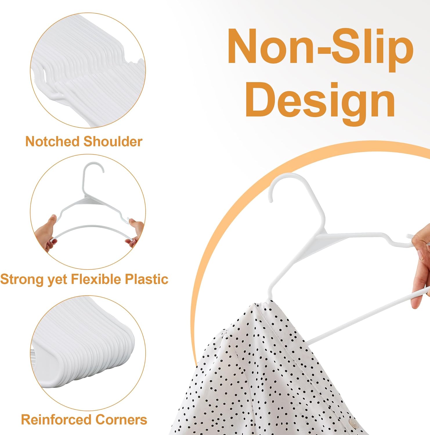 1,Maximize on space due to their slim, space saving design and enjoy the clean, calming effect on your closets.2,Constructed from non-breakable eco- friendly plastic.3, With reinforced edges, these closet hangers offer extra support and long-lasting durability,Load capacity up to 11bl.(5kg)4,Not fade even in the sun and rain, and can be used both indoors and outdoors.5,Anti-Slip ,Flexible,Heavy Duty,Rust Resistant,SlimMaterial:PlasticProduct Dimensions:16.5 "L x 1/4 "W x 9 "HPackage:Hangers ,free magic hangers , free tie rack.