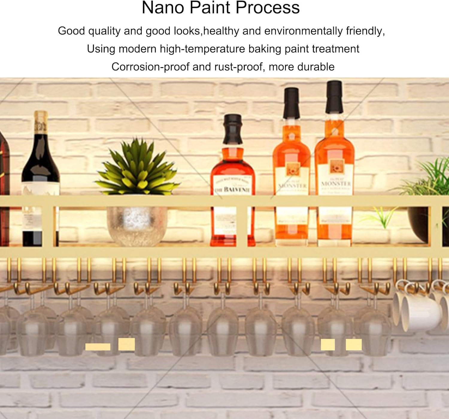 Beautiful wine rack for every styleModern style wine bottle rack is also a perfect home decoration for you. You can hang it in your kitchen, dining room or your home wine bar. Give your house a classy touch.Name: Wall Mounted Wine Rack with Wine Glass Rack Bar Shelves with Wine Glass Holders Hanging Under Shelf Wine Bottle Storage Holder Material: IronMetal structure process: weldingFurniture structure: frame structureColor: black/goldSize:60*25*14cm , 80*25*14cm , 100*25*14cm , 120*25*14cm➽Tips1. About color---------There may be color difference due to display screen or shooting light, please understand!2. About size---------Due to different measurement methods, there may be an error of 1~2cm, please understand!3 About service---------Please identify the store“MMCJIES”,We can ensure product quality and after sell.If you have any questions, please feel free to contact us, we will reply you within 24 hours.