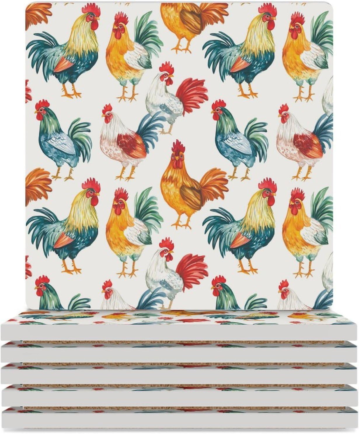 Cute Printed Absorbent Ceramic Coaster for Drinks Funny Coasters with Cork Base Suitable for Kinds of Mugs, Cups, Prevent Tabletop Wear And Scratches, and is Easy to Clean