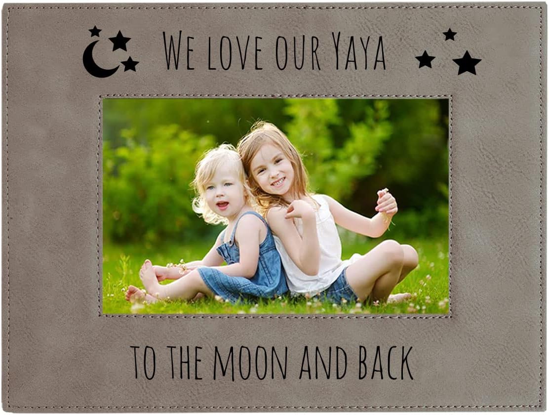 This Moon And Back Picture Photo Frame is laser engraved by our in-house laser engravers. The design will not rub off, will last for generations. This picture frame is made of faux leather. The high quality leatherette picture frame is richly textured and feels and looks like real leather. The gift can be given from a grandsons, granddaughters, a grandchild for a new grandparent or family. A memorable gift for years to come. The engraving removes the top layer of the leatherette and reveals the inner layer.