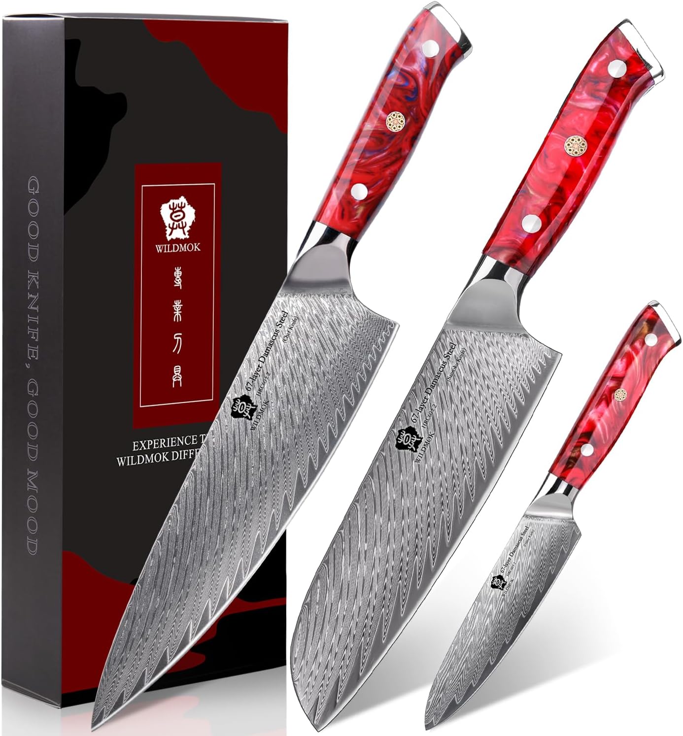 | Color | Silver Damascus steel feather pattern Blade, Black resin handle |