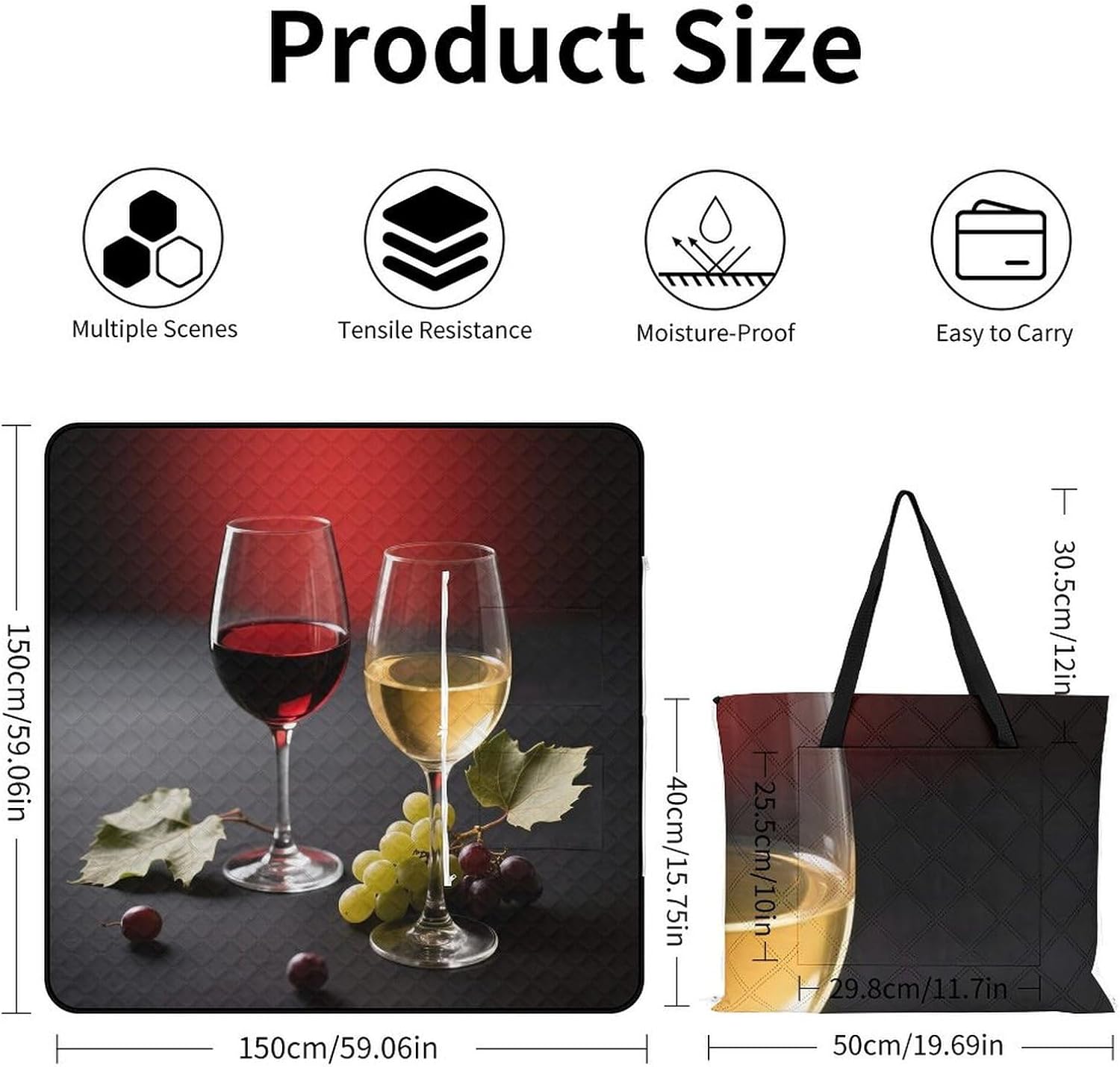 Elevate Your Outdoor Experience with the Versatile Picnic BlanketCollapsible Picnic Mat Picnic Essentials Convertible Tote Bag Portable Rug for Picnics Beach Essentials Camping Pad Cute Picnic Blanket Bag Foldable Travel Mat Large Family Picnic Blanket Outdoor Picnic MatsSuperior Protection and ComfortForget worrying about wet grass or prickly sand. Our blanket features a smart 3-layer construction. The top layer is soft to the touch, while the middle padding provides just the right amount of cushioning against hard ground. The bottom layer, made from durable 210D Oxford cloth, is completely waterproof and acts as a barrier against moisture and dirt, ensuring you stay clean and dry.Designed for the Modern ExplorerWe understand that space is precious when you're on the move. That's why our blanket features an ingenious foldable design. In seconds, it transforms from a full-size mat into a compact carry bag with a handle. This makes it incredibly easy to transport and store. But the innovation doesn't stop there; the carry bag itself is designed to be used as a sturdy shopping tote, making this blanket a true 2-in-1 essential for eco-conscious shoppers.Choose Your Perfect Size:59 x 40 inches / 150 x 100cm: Ideal for couples or solo use.59 x 59 inches / 150 x 150cm: Perfect for a small family or small group of friends.78.8 x 78.8 inches / 200 x 200cm: Our large size, perfect for family gatherings and group outings.Whether you're planning a beach vacation, a camping trip, a hike, or a simple day at the park, this cute picnic blanket is your reliable partner for comfort and convenience. Pack it, carry it, and enjoy the outdoors without compromise.