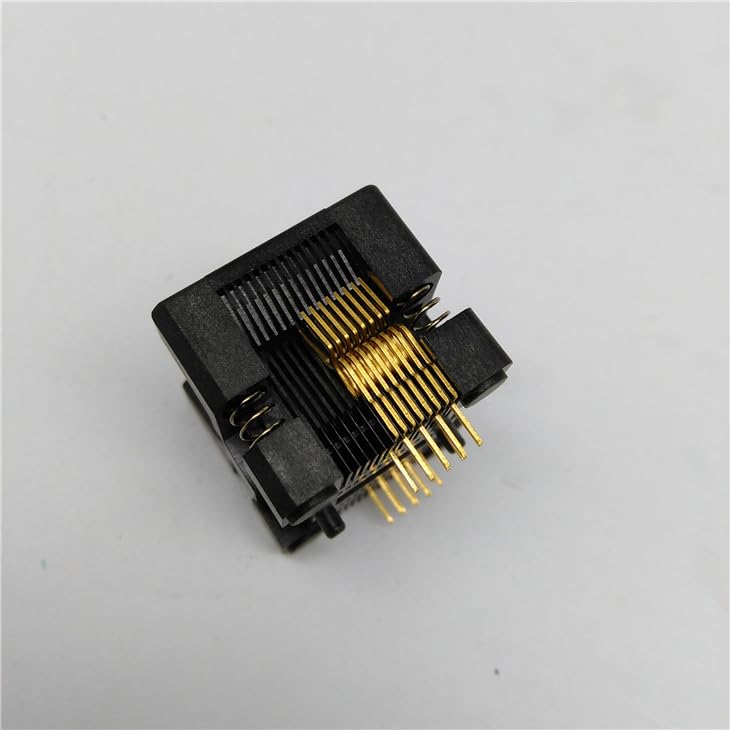 SSOP16 TSSOP16 Burn in Adapter OTS-28-0.65-01 ICTest Socket Features:1. Use double contact technology , contact more stable ,2. The socket shell use special engineering plastic , high strength , long mechanical life ,3. The shapnel use import beryllium copper , small impedance , good flexibility ,4. Coating with ticken gold plating layer , contact ticken electroplate , lowest contact resistance , high reliability .Product performance :1. Material :a) Insulator , PEI , PPSb) Shrapnel , beryllium copper Be Cu Gold plating(30) Over Nickel plating(50)2. Electrical Specifications:a) Insulation resistance : 1000m Min,At DC 500Vb) Voltage resistance : voltage resistancec) Contact resistance : exceed 25md) PIN feet stretch : 55g/PIN(Normal)e) Mechanical life : 50000Timesf) Operating temperature : Minus 65 degree to 55 degressg) Operating force : exceed 0.9kg Max3. Specification and Dimensiona) Type : SSOP16(28)-0.65b) Pin pitch : 0.65mmc) Pin count : 16d) Applicable IC body width : 4.4mm